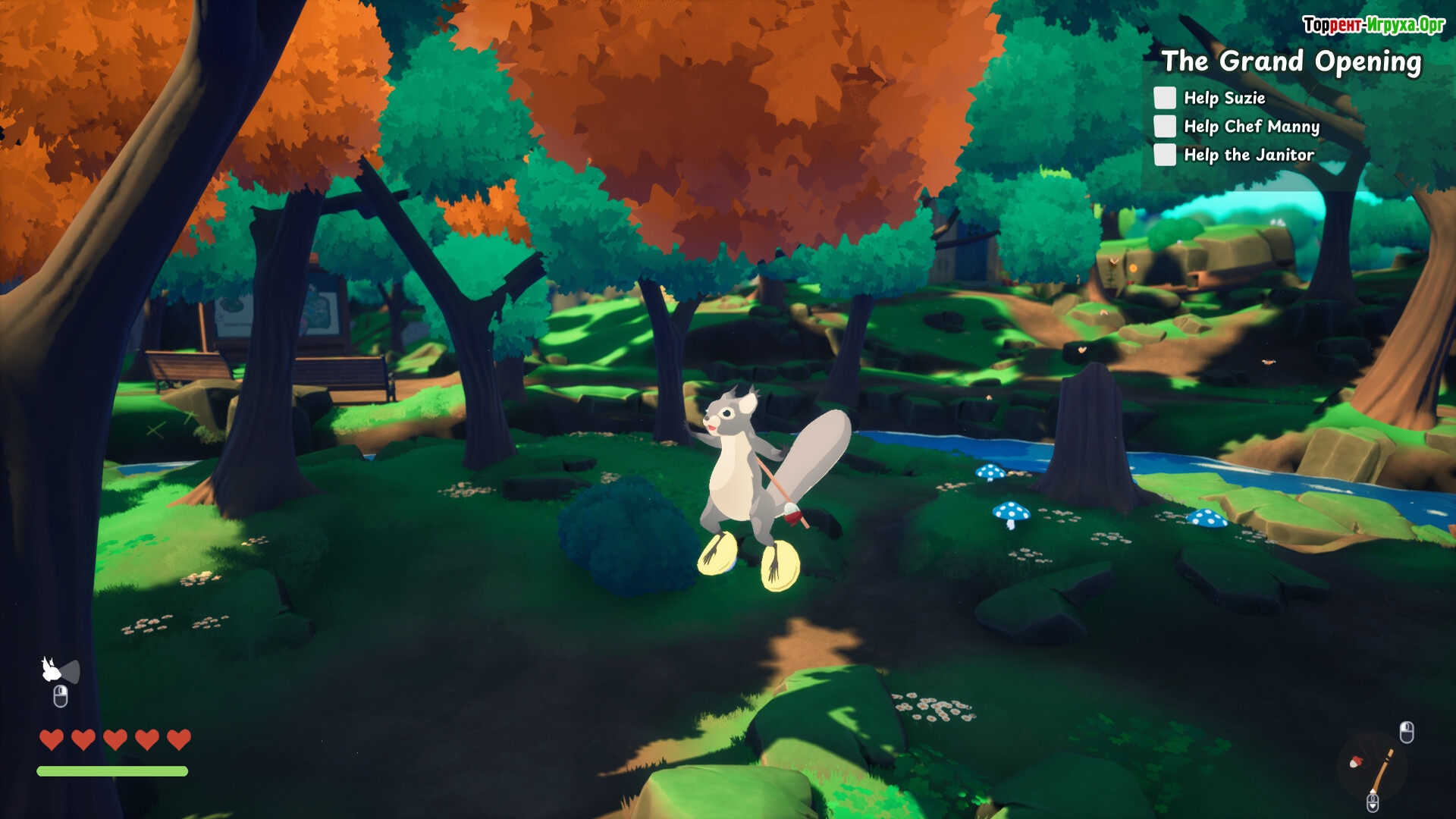 Игра выделяется творческим процессом строительства и оформления гнёзд, позволяет исследовать парк в своём темпе и предлагает кооперативный режим для совместных открытий. Squirreled Away — идеальный выбор для тех, кто ищет спокойную и вдохновляющую атмосферу игры.