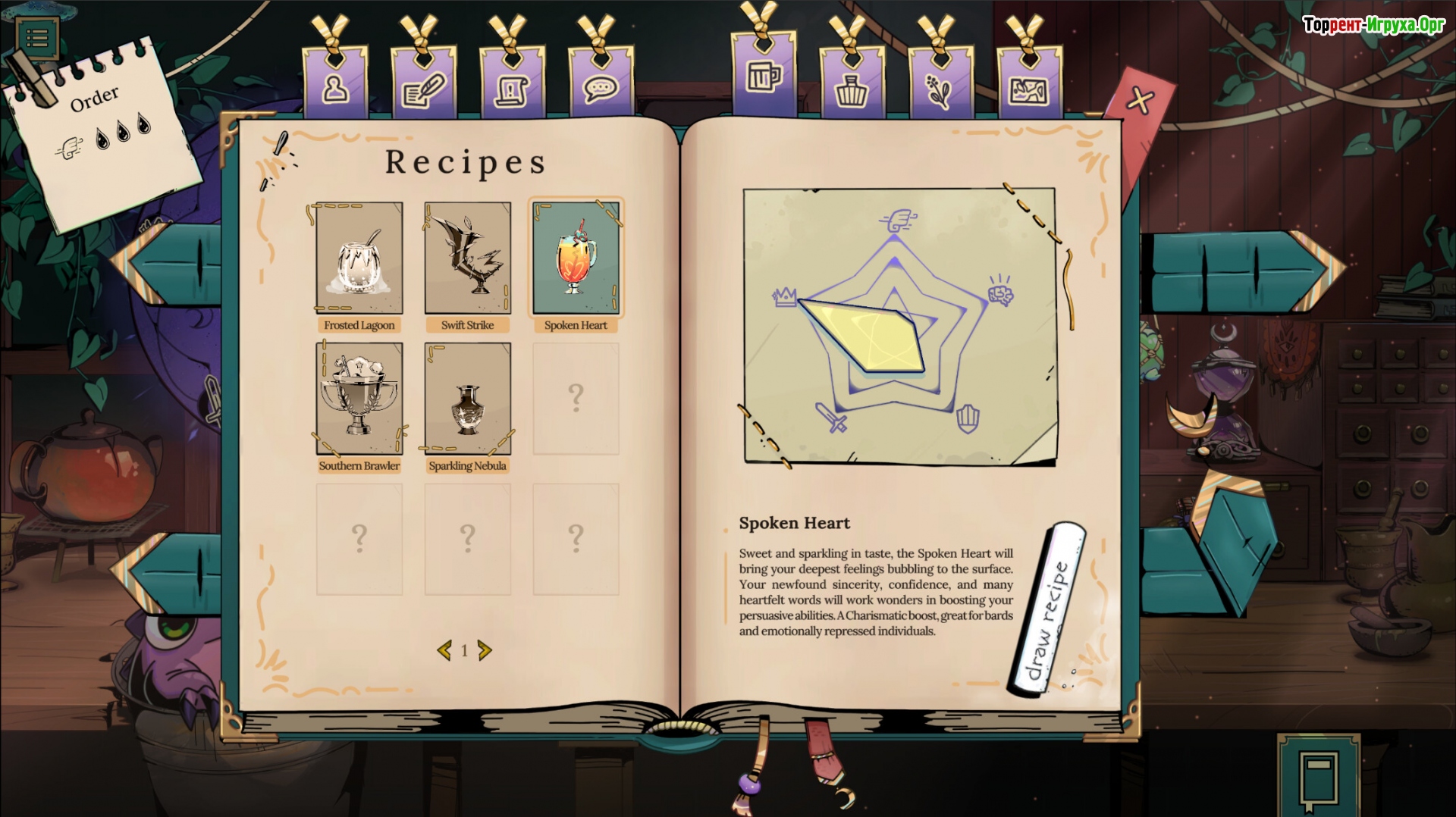 Ваша таверна станет центром внимания благодаря уникальному дару — созданию волшебных напитков, способных менять судьбы героев. Слава о ваших умениях быстро распространяется по королевству, а в рецепте окажутся такие зелья, как бурлящая ярость и освежающий тоник танцующих мечтаний. Используйте свое мастерство, чтобы влиять на ход событий и сопровождать героев в их судьбоносных приключениях.