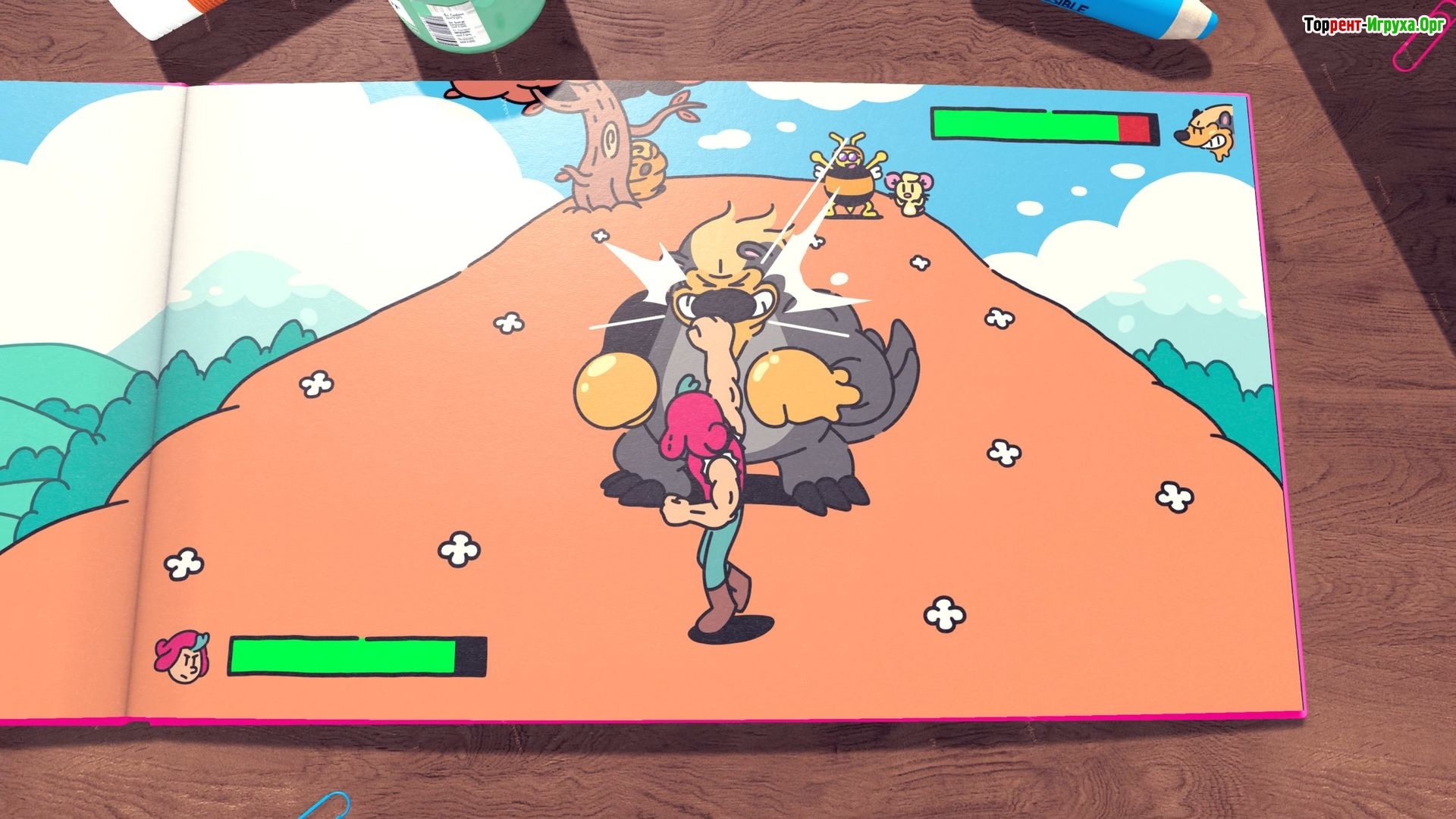 В процессе прохождения вам предстоит сражаться с разнообразными врагами и искать могущественные оружия, выполняя при этом интересные квесты, в которых скрыты полезные подсказки. Главное — внимательно следовать инструкциям и получать удовольствие от оригинального сюжета, сочетающего легкий юмор с серьёзными моментами. Чтобы начать это эпическое путешествие, достаточно скачать The Plucky Squire через торрент на русском языке.