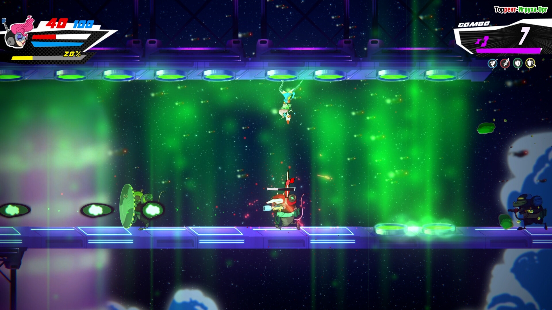Raygun Gadabout предлагает не только исследование необычных космических локаций, но и развитие персонажа через приобретение новых способностей и смертельных приёмов. Эпические битвы с боссами и продуманный геймплей делают игру притягательной для поклонников платформеров и динамичного экшена в космической тематике.