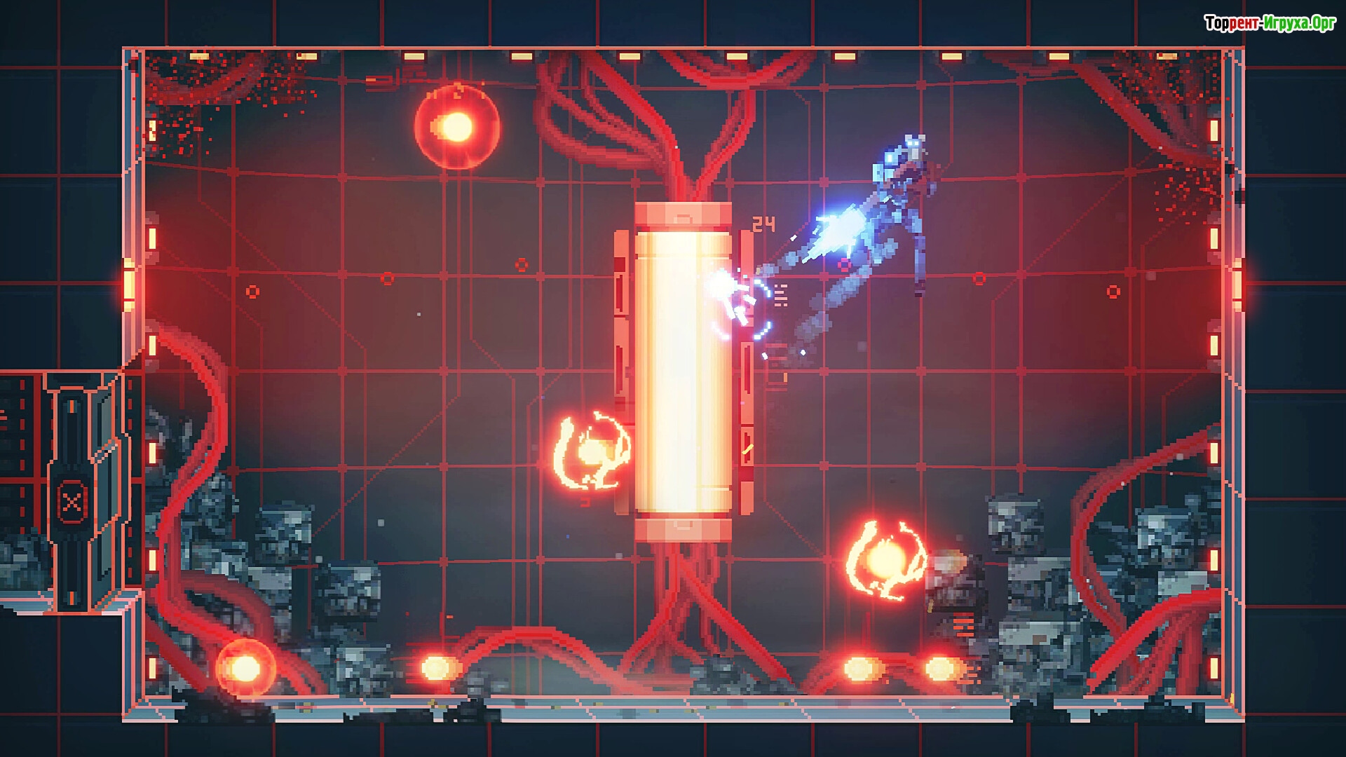Вы управляете мощным боевым роботом, способным преодолевать невероятные испытания и раскрывать тайны объекта «Arksync». Проходите множество уникальных уровней, сражайтесь с грозными боссами и используйте ограниченное количество жизней максимально разумно. По мере необходимости можно пополнить их запас и совершенствовать свое вооружение, что позволит сделать путешествие более безопасным и эффективным.