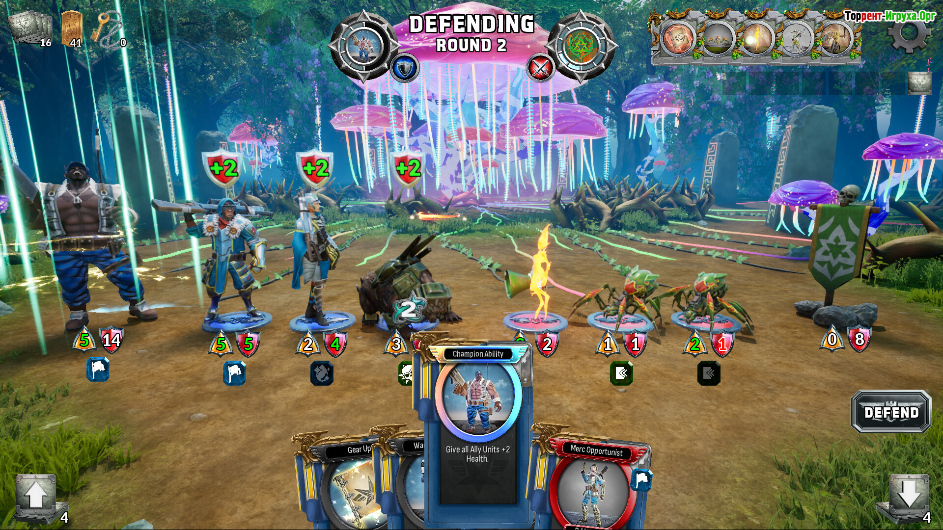 Каждый Чемпион ведёт бой из тыла, ощущая пульс сражения через своих солдат. Потери лишь укрепляют его волю, открывая возможность активации мощных карт способностей, которые способны кардинально изменить ход битвы. Уникальные умения героев разнообразны — от иллюзий до разрушительных атак и контроля времени. Таким образом, тактическое планирование превращается в искусство, где важен не размер армии, а точность и своевременность стратегических решений.