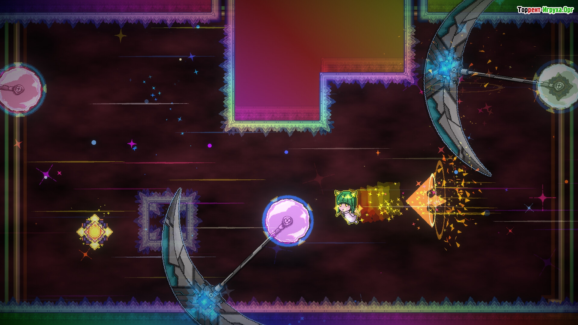 Игра выполнена в классическом двухмерном стиле с боковой прокруткой, предлагая игрокам испытать свои рефлексы и ловкость с помощью оригинальной механики рывков. Отсутствие карательных элементов позволяет учиться на ошибках и совершенствоваться, даже сталкиваясь с неудачами, что делает игровой процесс более мотивирующим и гибким.