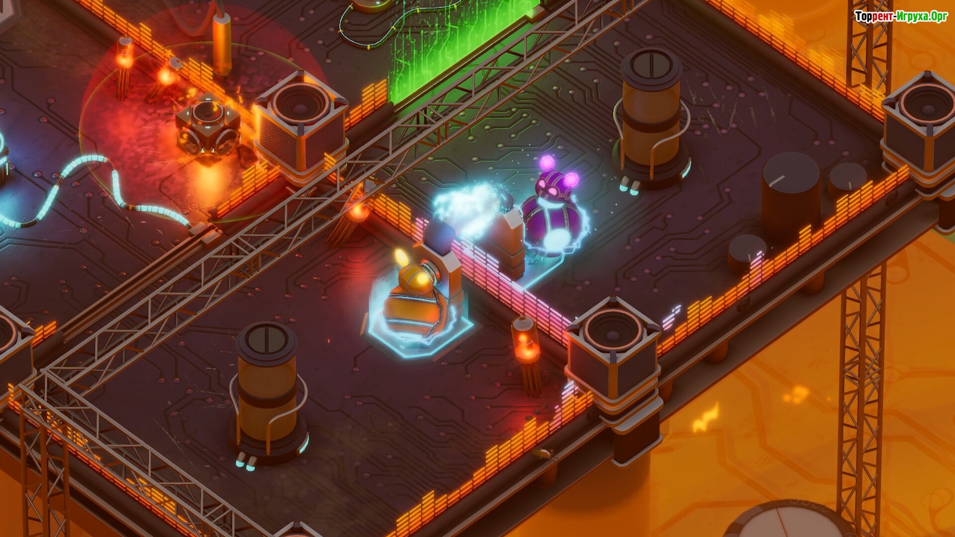 В этой игре каждое действие требует точной координации: заряжайте механизмы, направляйте энергию и активируйте системы, чтобы преодолевать препятствия. Если вы предпочитаете одиночное прохождение, режим на одного игрока позволяет управлять сразу двумя дроидами, сохраняя глубину и сложность процесса.