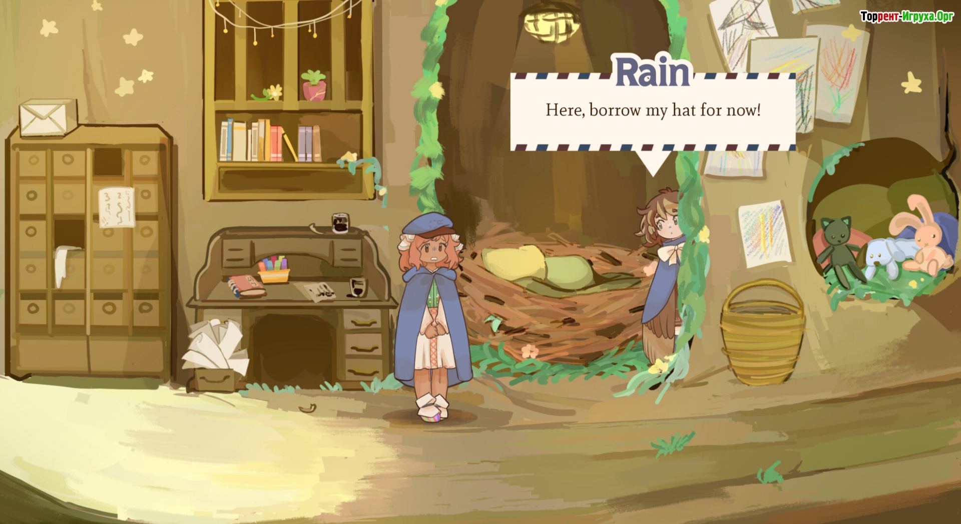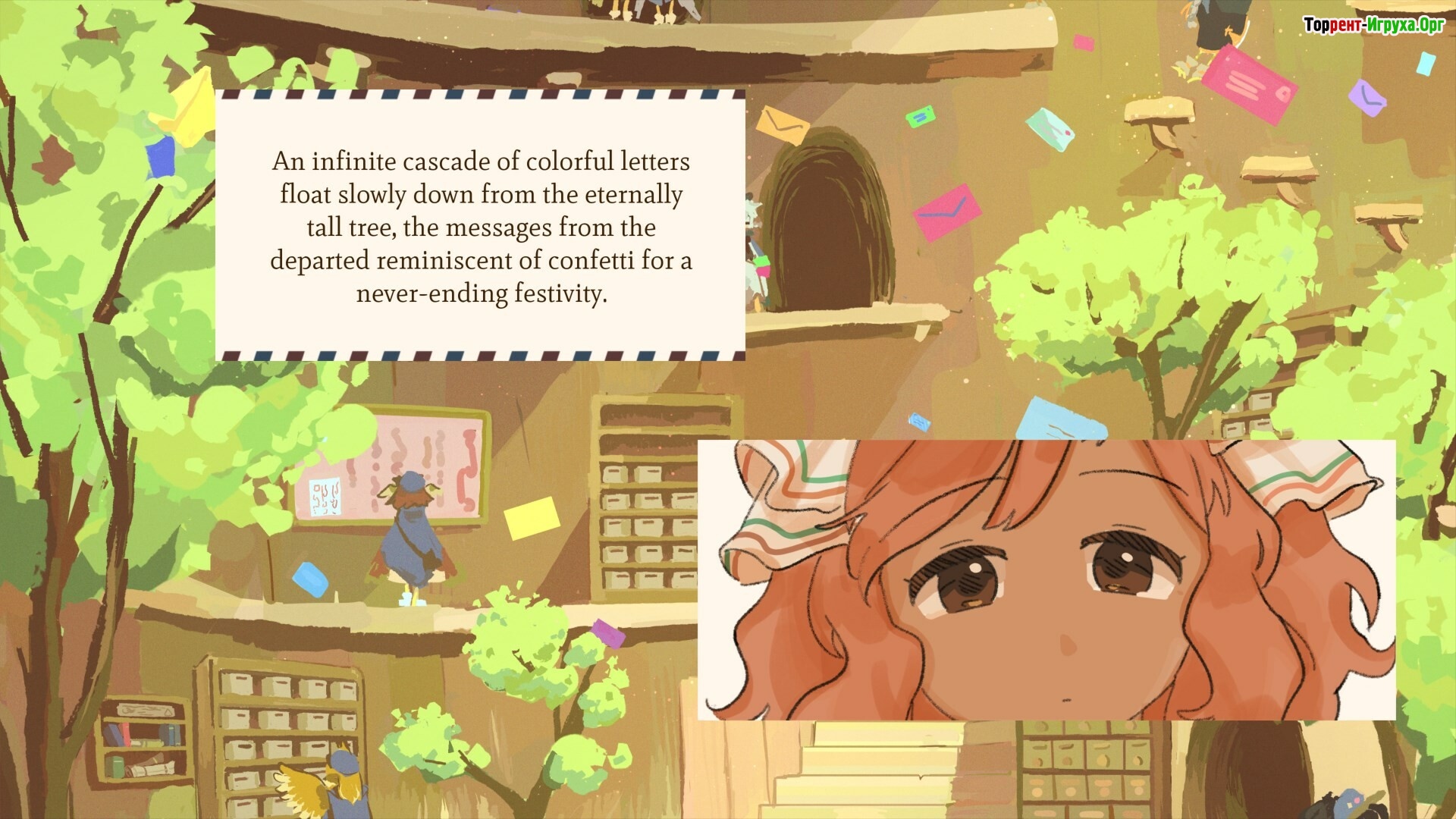 Upwards, Rain! The Post Office of Farewells — это трогательное путешествие по миру писем, воспоминаний и неотправленных посланий, созданное студией Studio Élan в 2025 году. Главные герои — ветреный курьер Рейн и застенчивая Мила — поднимаются всё выше внутри огромного мистического дерева, где расположено почтовое отделение Mortem Post, хранящее письма ушедших.
