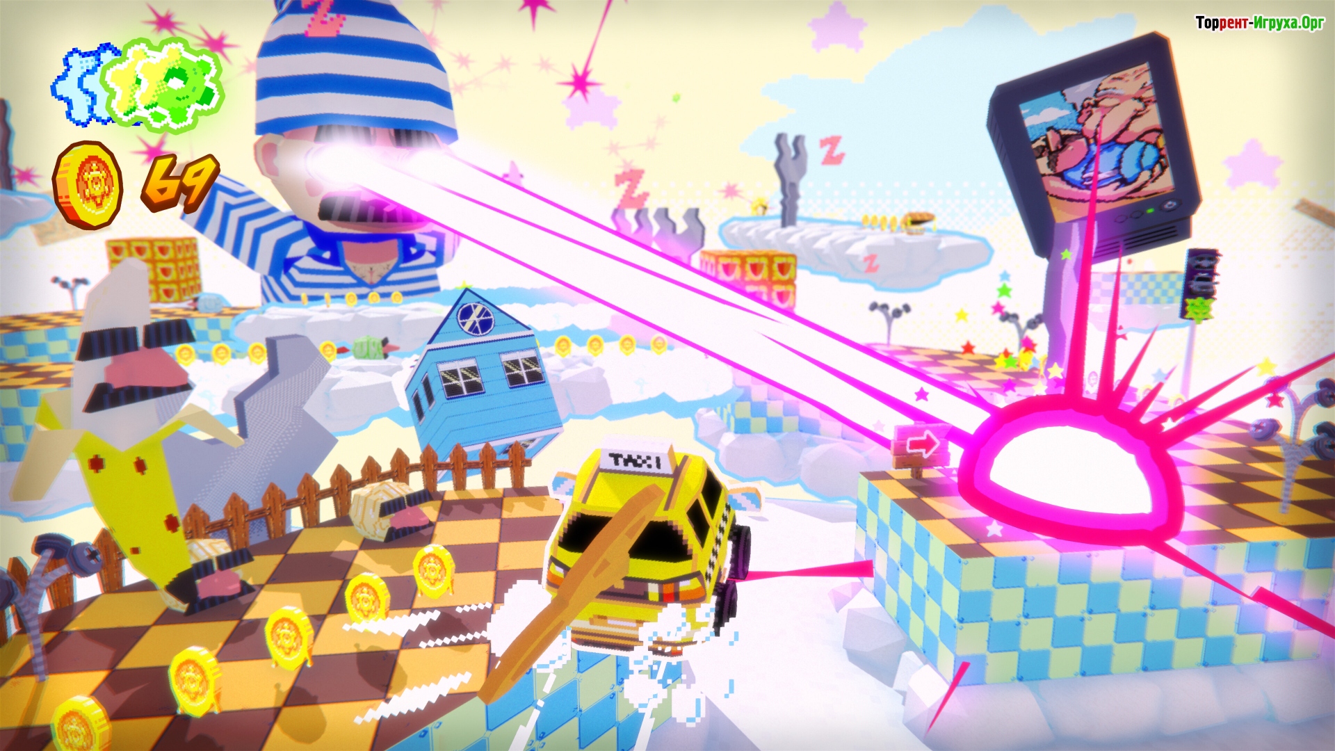 Yellow Taxi Goes Vroom предлагает вам использовать современные движения для исследования тщательно созданных ретро-миров без привычных кнопок прыжков. Эта игра от Panik Arcade переносит игроков в атмосферу ностальгии по эпохе N64, вдохновляя на уникальные и динамичные действия в класическом аркадном формате.