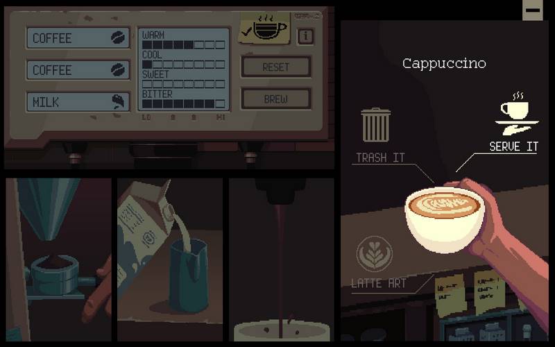 В этом игровом проекте акцент сделан на историях, которые рассказывают посетители, а главный персонаж определяет, как будут развиваться их судьбы. Игроки будут не только слушать увлекательные рассказы, но и общаться с клиентами, а также обслуживать их. В меню представлено разнообразие чая и кофе, а креативность в подаче напитков может быть достигнута с помощью молока, создавая интересные узоры. Чтобы заведение пользовалось популярностью, достаточно предложить вкусные напитки и душевный разговор.