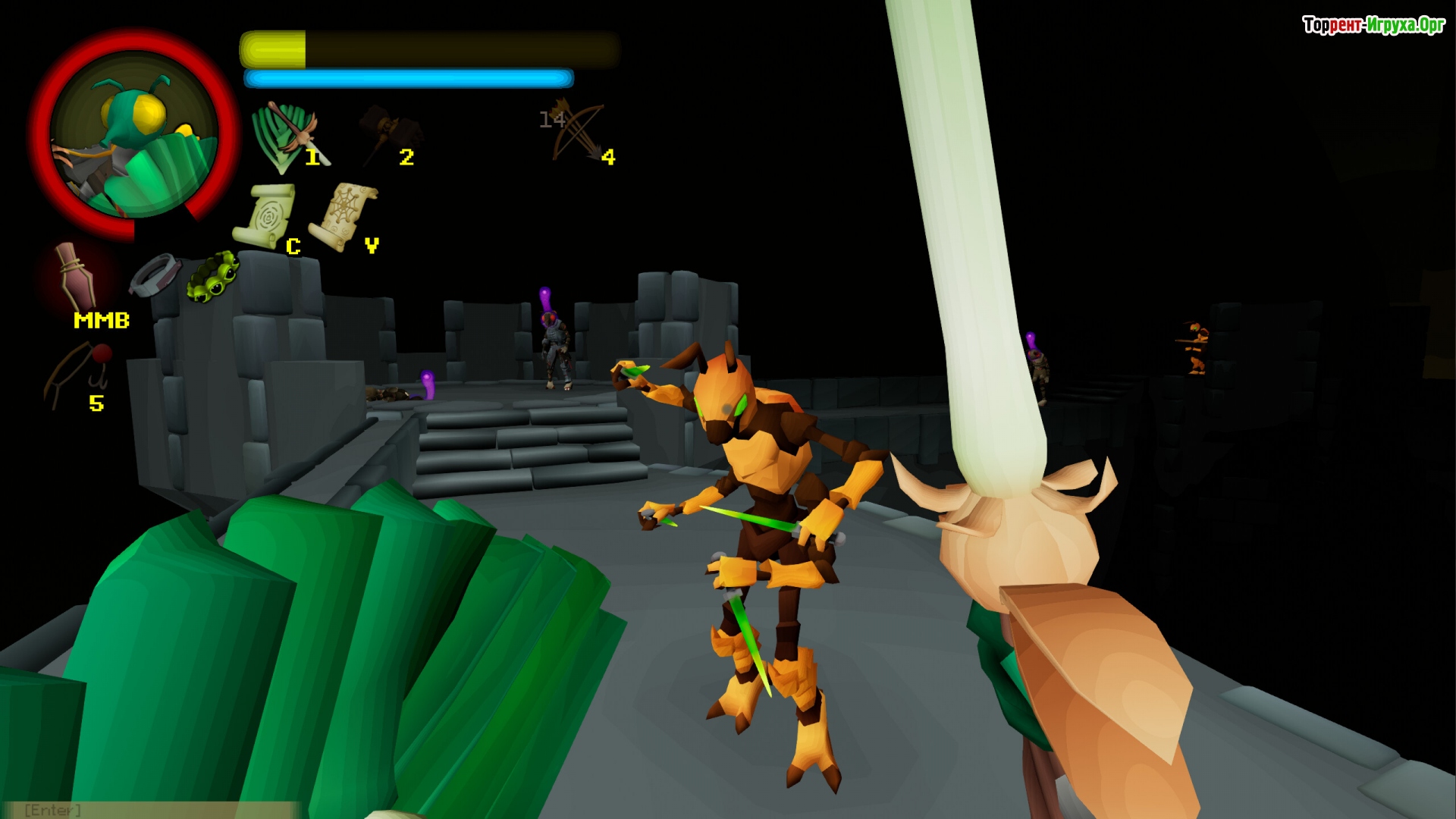 Боевая система FlyKnight требует внимательной тактики: разрушайте доспехи врагов, отсекайте конечности или атакуйте на расстоянии. Максимально эффективно применяйте найденное оружие и планируйте действия, чтобы победить опасных противников.