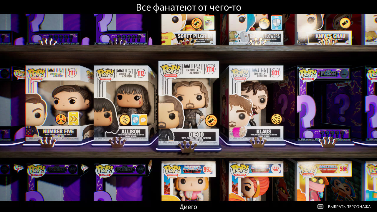 The Walking Dead Pack Team Fortress 2 Pack KFC Chef Colonel KFC Mecha Colonel Bob Ross Pack He-Man (Slime Pit Variant) M3GAN (Battle Damaged Variant) Dilophosaurus (Eddy Variant) Bob's Big Boy Mecha Freddy Sun Wukong Back to the Future Outfits Pack Jurassic World Bonus Pack Trap Jaw Frankenstein Invincible Pack Wicked Movie Pack 1 Wicked Movie Pack 2 Kim Pine Hazel & Cha Cha The Office Cameo Pack SpecialEffect's Streamer Bear Mega Man Pack Yuletide PackИгра "Funko Fusion" включает в себя разнообразные дополнения, каждый из которых добавляет уникальных персонажей и элементы в игровой процесс.