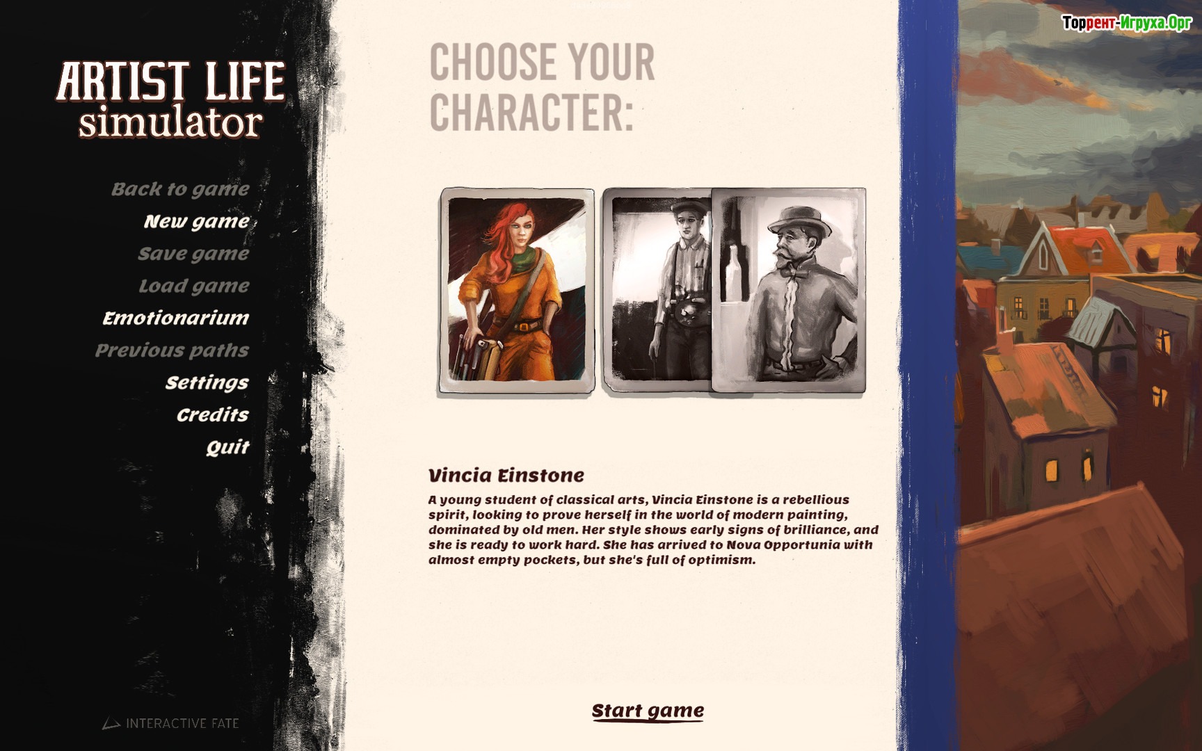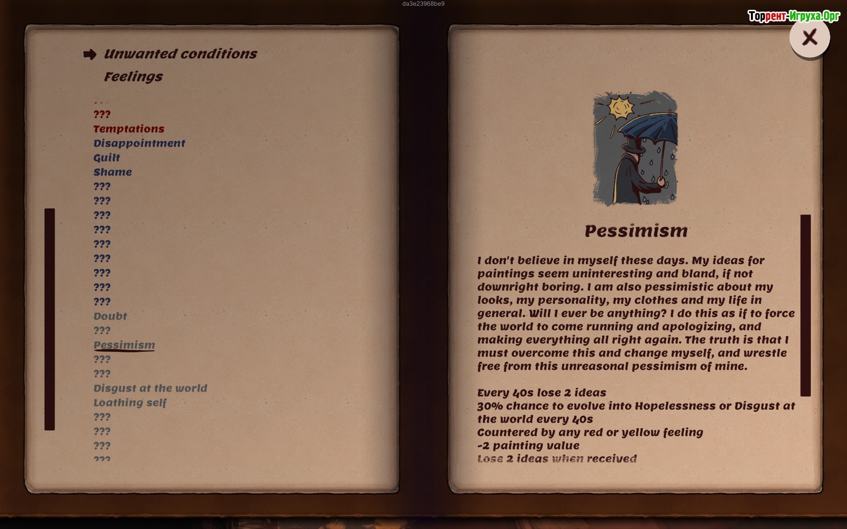 Погружаясь в мир Artist Life Simulator, вам предстоит столкнуться с различными эмоциями — тревогой, гневом, депрессией и даже суицидальными мыслями. Объединяя чувства, вдохновение и воспоминания, можно найти силы для борьбы с психическими расстройствами и создать уникальные произведения искусства. Исследуйте город Новая Опортуния, выражая внутренние переживания при помощи красок и кисти, чтобы преобразить страдания в настоящие шедевры.