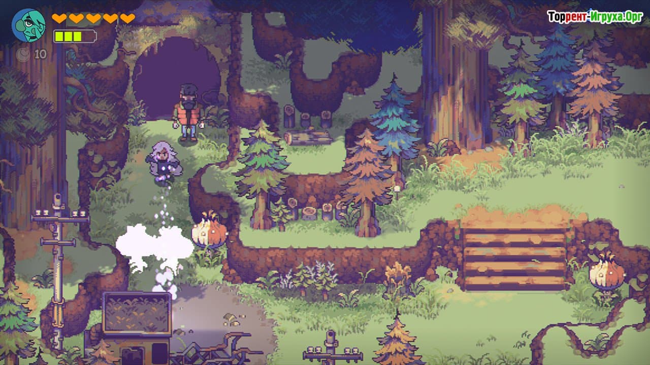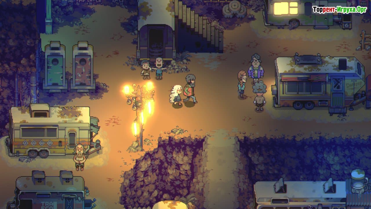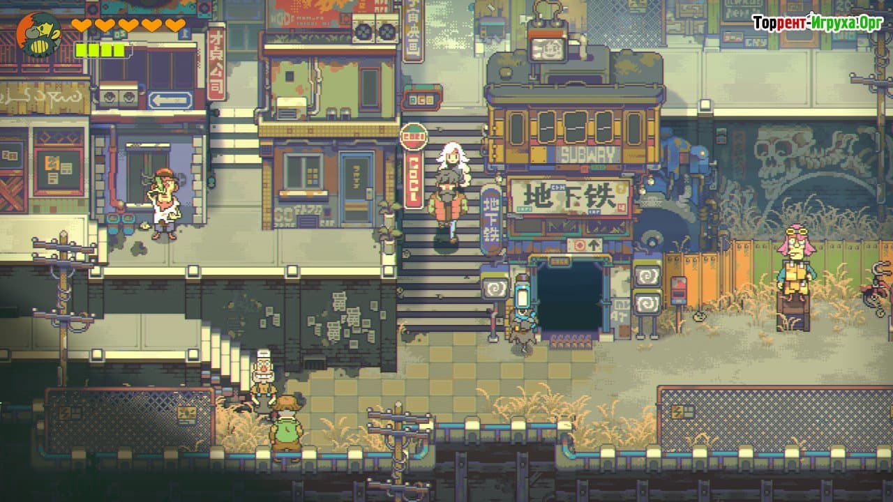 Игра Eastward от инди-разработчика Pixpil, выпущенная в 2021 году, предлагает увлекательное приключение с элементами RPG и адвентуры в ярком, детализированном мире. События разворачиваются в ближайшем будущем, где общество сталкивается с упадком и уменьшением населения. Главным героем становится шахтер Джон, который в подземелье находит загадочную девушку Сэм. Вместе им предстоит покинуть город и отправиться в путешествие, чтобы раскрыть тайну темных существ, угрожающих местным поселениям.