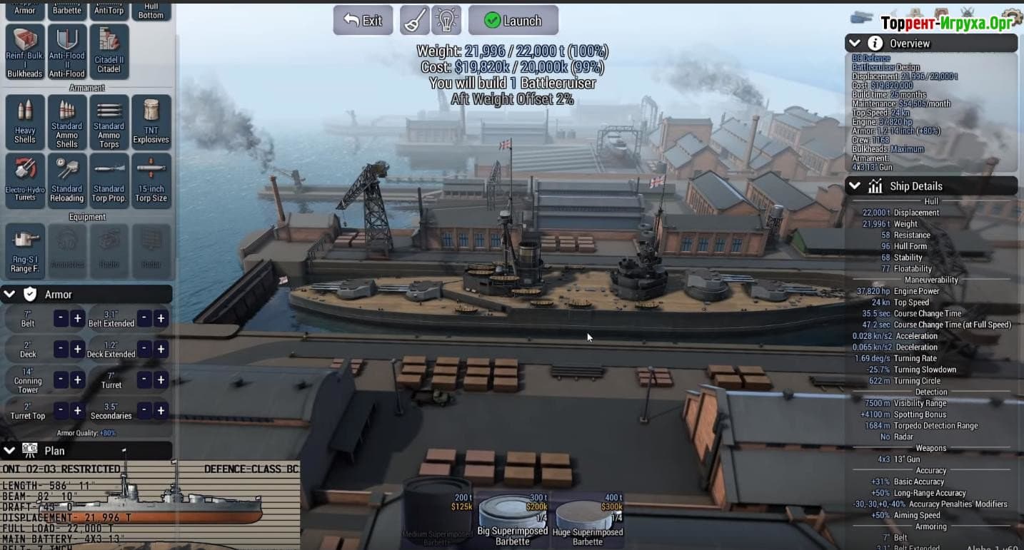 Игроки получают возможность стать настоящими конструкторами военных кораблей — от быстрых торпедных катеров до мощных линкоров, включая легендарный HMS Dreadnought. Каждый корабль можно полностью настраивать, выбирая расположение башен, оптимизируя броню и тщательно продумывая внутреннее устройство, что напрямую влияет на маневренность и боеспособность судна. Особое внимание уделено параметрам корпуса и распределению нагрузки, чтобы создать максимально эффективный и уникальный флот.