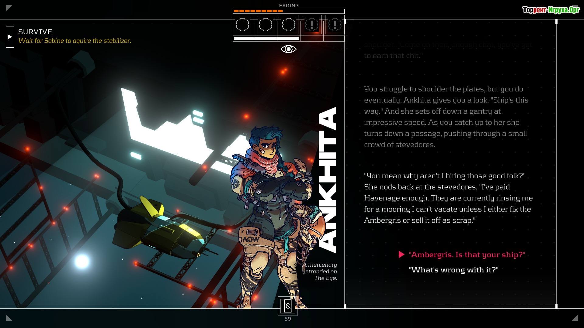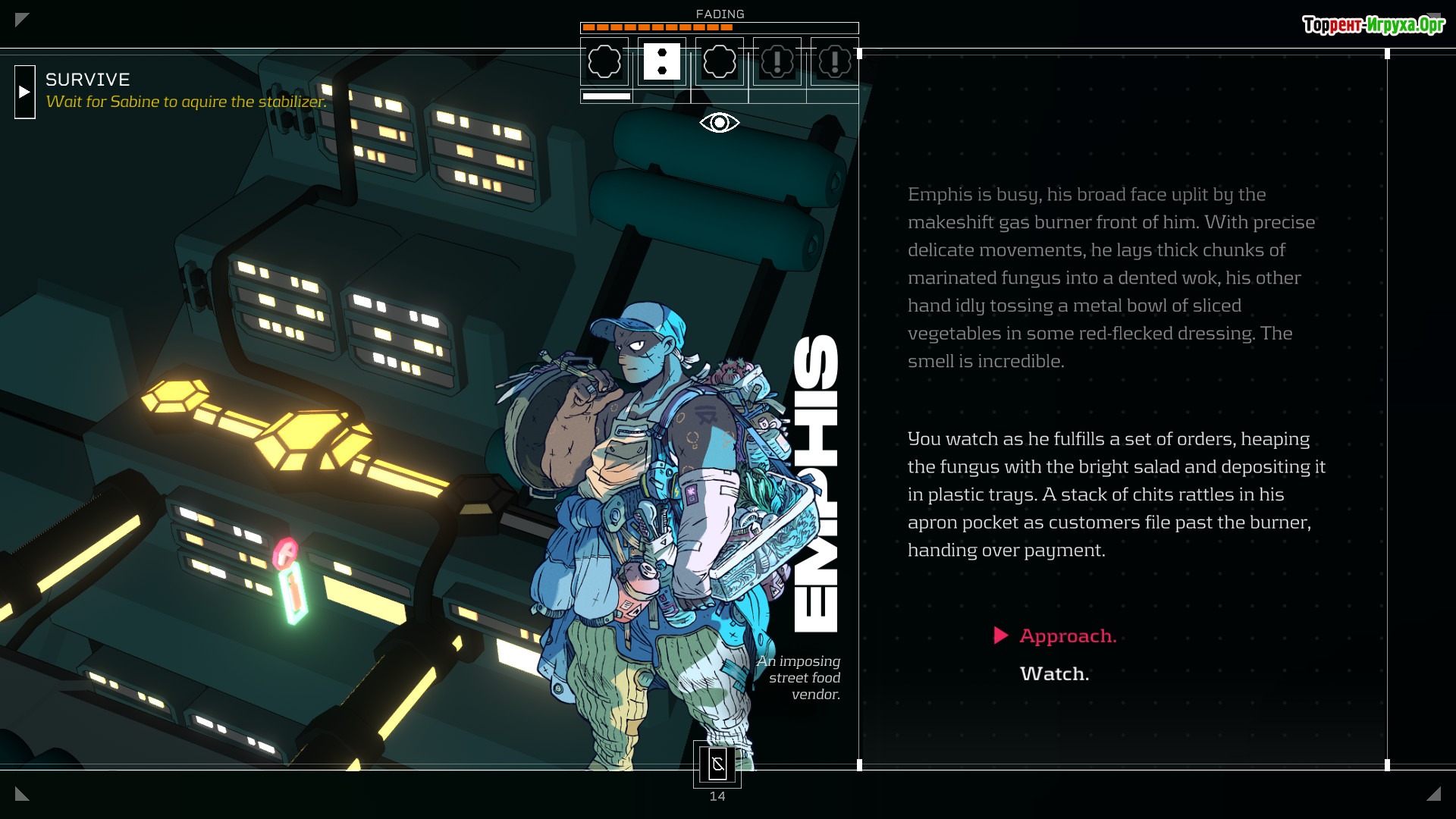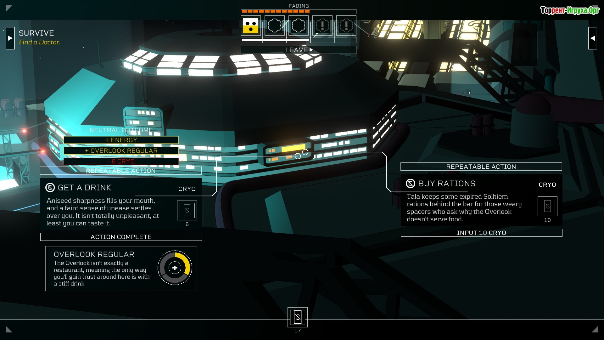 В роли игрока вы познакомитесь с различными жителями Ока — хакерами, барменами, мусорщиками и инженерами, каждый из которых имеет собственную судьбу. Для выживания придётся заводить новые знакомства, изучать особенности фракций и находить своё убежище среди космического мегаполиса. Работа в барах или на улицах станет привычным делом, а рынок предложит еду и редкие ресурсы. Citizen Sleeper предлагает глубокий сюжет, в котором свобода воли пользователя играет ключевую роль, позволяя принимать важные решения.