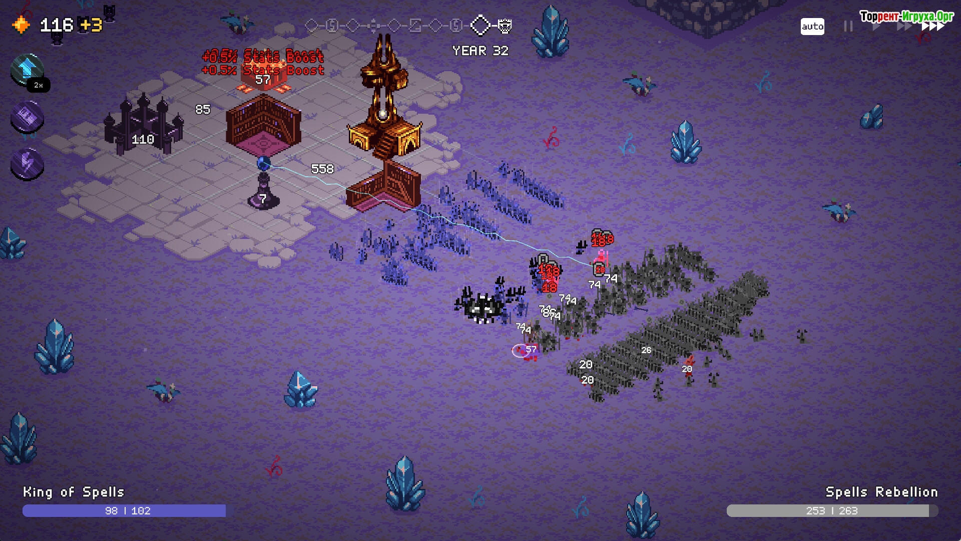 В 9 Kings начало пути — небольшая деревушка, которую нужно превратить в неприступную крепость, способную выдержать самые ожесточённые атаки. Стройте разнообразные здания, тренируйте необычные войска и собирайте карты заклинаний и усилений, выбирая свой стиль ведения войны — будь то огненная магия, загадочные грибные стены или орды призраков. Управление ресурсами и продуманная тактика играют важную роль в каждое мгновение битвы.