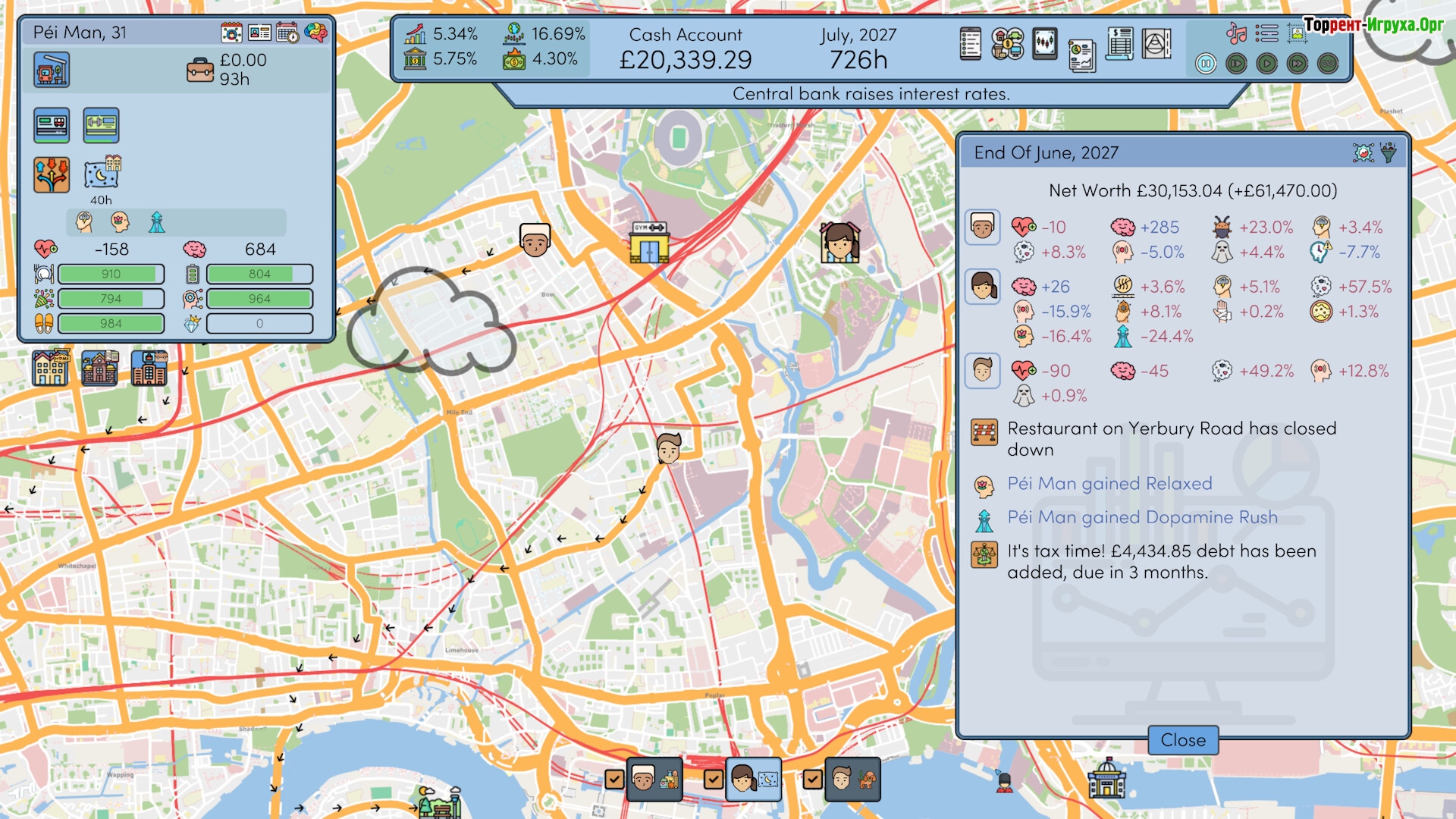 Экономика в игре построена без компромиссов: вы полностью контролируете образ жизни персонажей, решая, какие задачи они будут выполнять, в то время как динамический рынок вносит свои коррективы. Производственные отрасли могут неожиданно стать прибыльными, а коммунальные расходы резко снижаться, создавая реалистичные и непростые экономические условия. Постоянные изменения цен и отраслевые колебания формируют сложные вызовы для управления ресурсами.