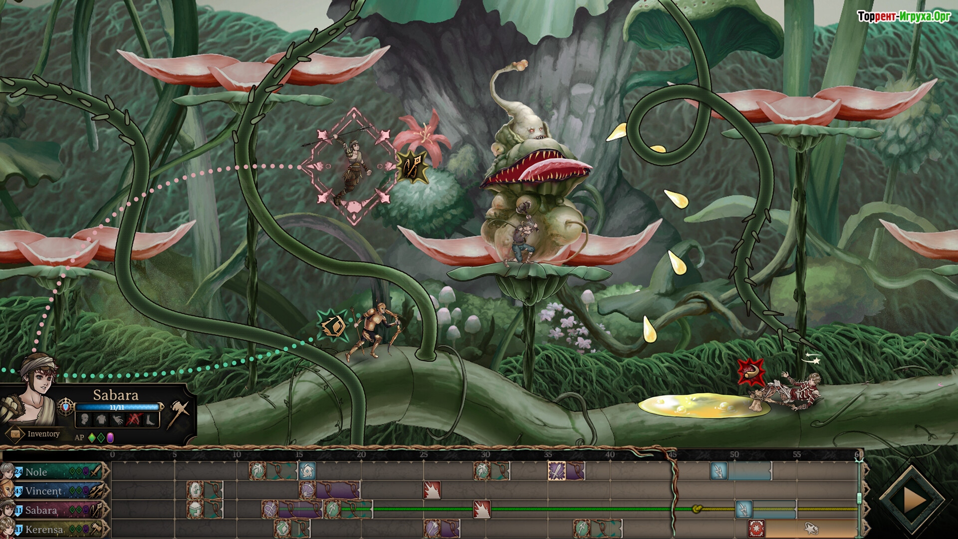 Это действительно новый взгляд на пошаговую рпг! В этот раз вы перемещаетесь не в пошаговой изометрии по клеткам, а в сайд-скроллере, где можете мотать время вперёд или назад, чтобы посмотреть, какие действия совершит враг и какие действия совершите вы.