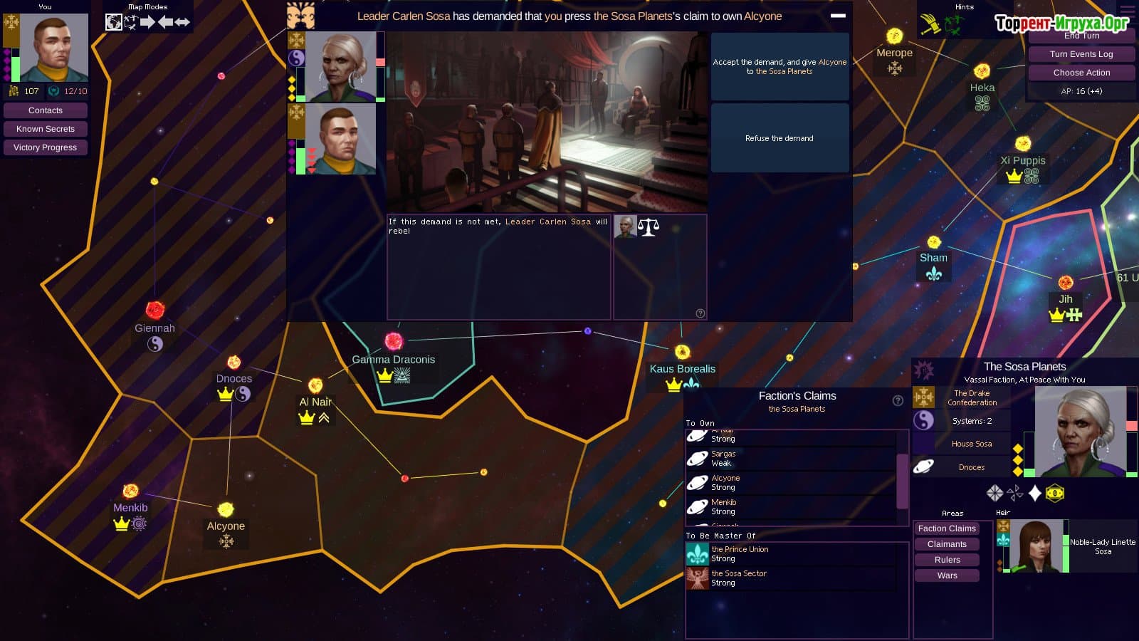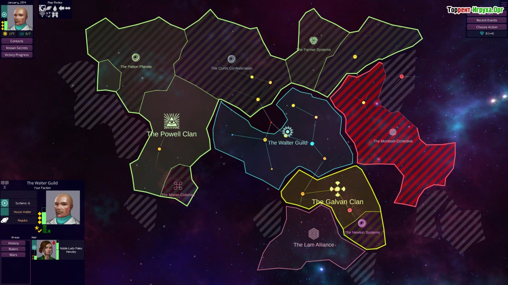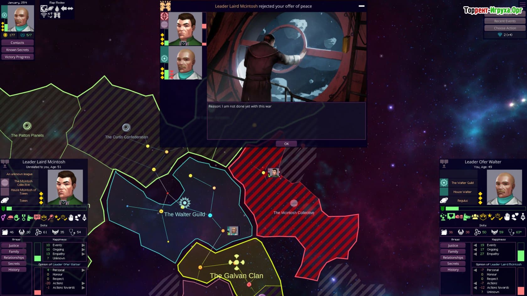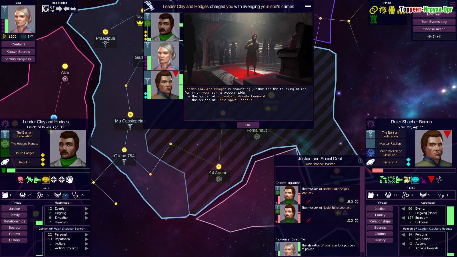 Вас ждёт глубокий сюжет, наполненный личными драмами и политическими конфликтами, где каждый персонаж обладает своими уникальными потребностями, тайнами и амбициями. Заработайте уважение населения, чтобы построить авторитет и добиться господства во вселенной. Проявляйте справедливость, награждая союзников и жестко карая врагов, чтобы укрепить свою власть и сохранить влияние на будущее человечества.