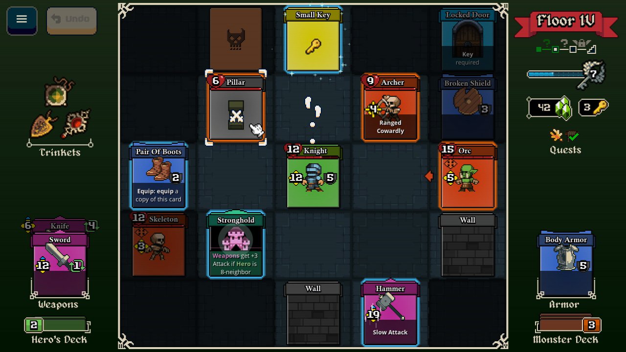 Вы можете скачать торрент версии "Lost For Swords" на ПК и узнать всё это на собственном опыте. Вооружитесь всем, что найдете — каждое ваше действие имеет значение. Каждый ход представляет собой маленькую стратегию: блок или удар, ловушка или исцеление, пожертвование ресурсом или его сохранение на будущее. Заметьте, что элементы не повторяются: использовали заклинание — и оно исчезает, надели доспехи — ожидайте их разрушения.