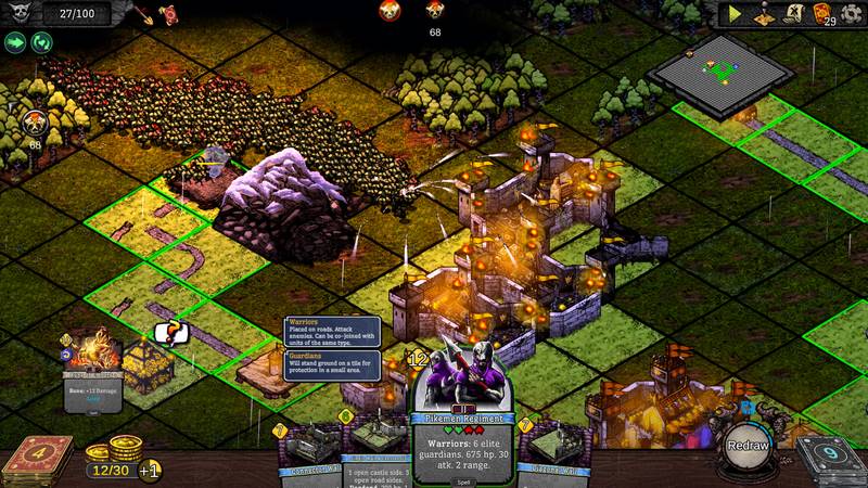 Начните с одной крепости и постепенно развивайте свое королевство, захватывая соседние участки для строительства новых зданий. Эти постройки помогут не только в защите от врагов, но и в улучшении экономики и поддержке вашей армии. Каждая карта обладает особыми свойствами, которые влияют на игру, открывая доступ к новым возможностям и способам нанесения урона.