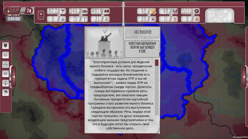 Сегодня мы представляем вам увлекательный инди-проект под названием Collapse A Political Simulator, разработанный компанией Kremlingames. Игра выполнена в жанре стратегического симулятора и охватывает период с 1992 по 2004 годы. Вам предстоит взять на себя роль лидера политической партии в условиях, когда советское государство сталкивается с глобальным кризисом, и попытаться реализовать свои политические амбиции наряду с желаниями других.