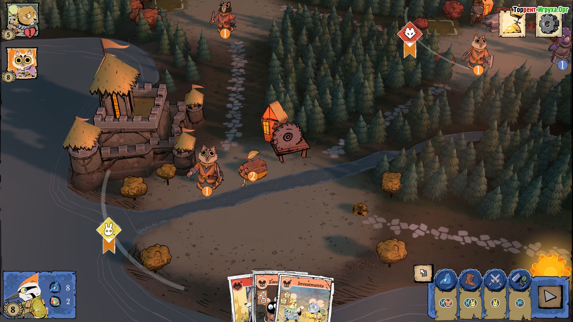 Игровой сюжет Root представляет собой адаптацию популярной настольной игры, где сражения идут между различными звериными фракциями за власть над лесом. Игроку предстоит выбрать сторону и вести свой народ к победе, используя стратегические умения и тактику. В центре истории — борьба Маркизы де Коте за доминирование, а жители леса формируют союз из самых отважных представителей своей среды. Погрузитесь в атмосферу уникального лесного мира, познакомьтесь с его жителями и постарайтесь одержать верх над противниками. Для успешной игры необходимо тщательно продумывать планы и применять логическое мышление. Выберите главного героя и определите его принадлежность к одной из фракций, после чего можно начинать игру в одиночном или кооперативном режиме.