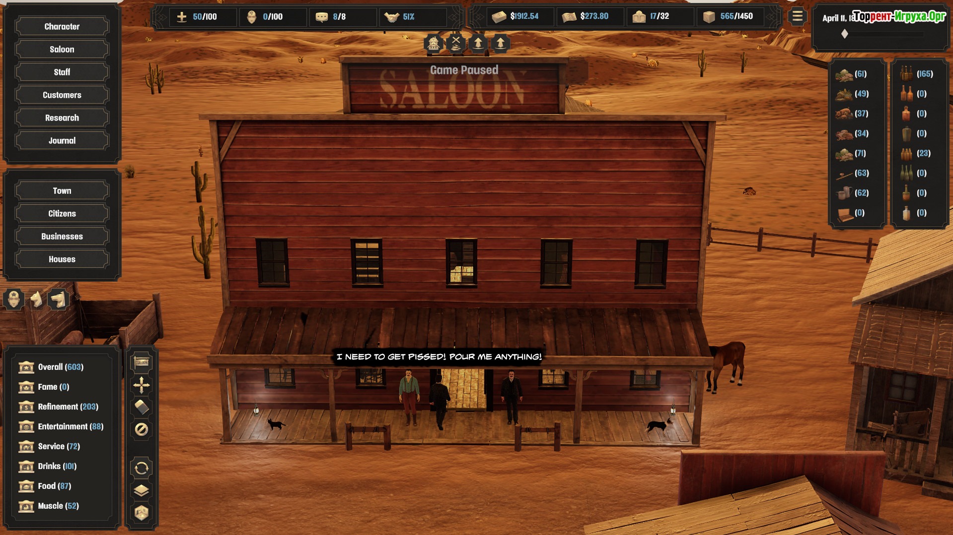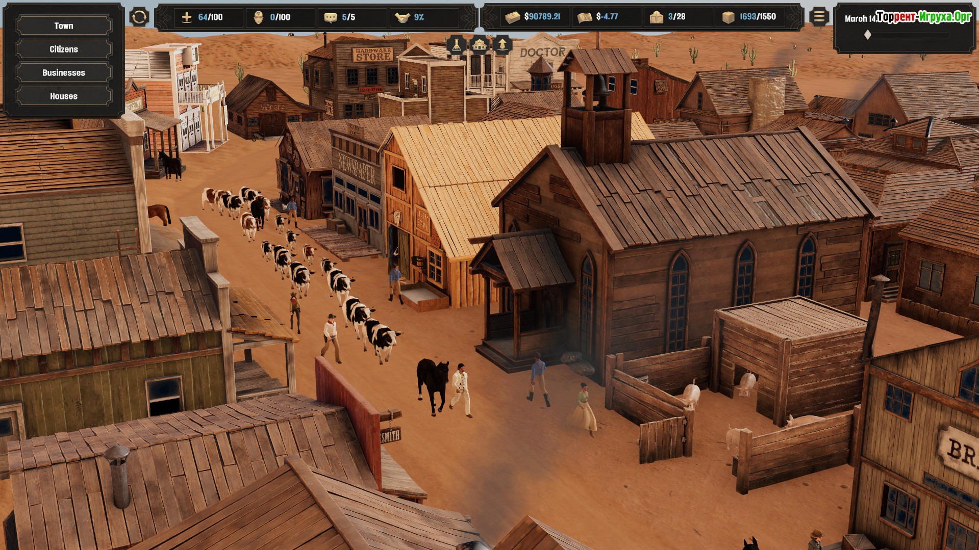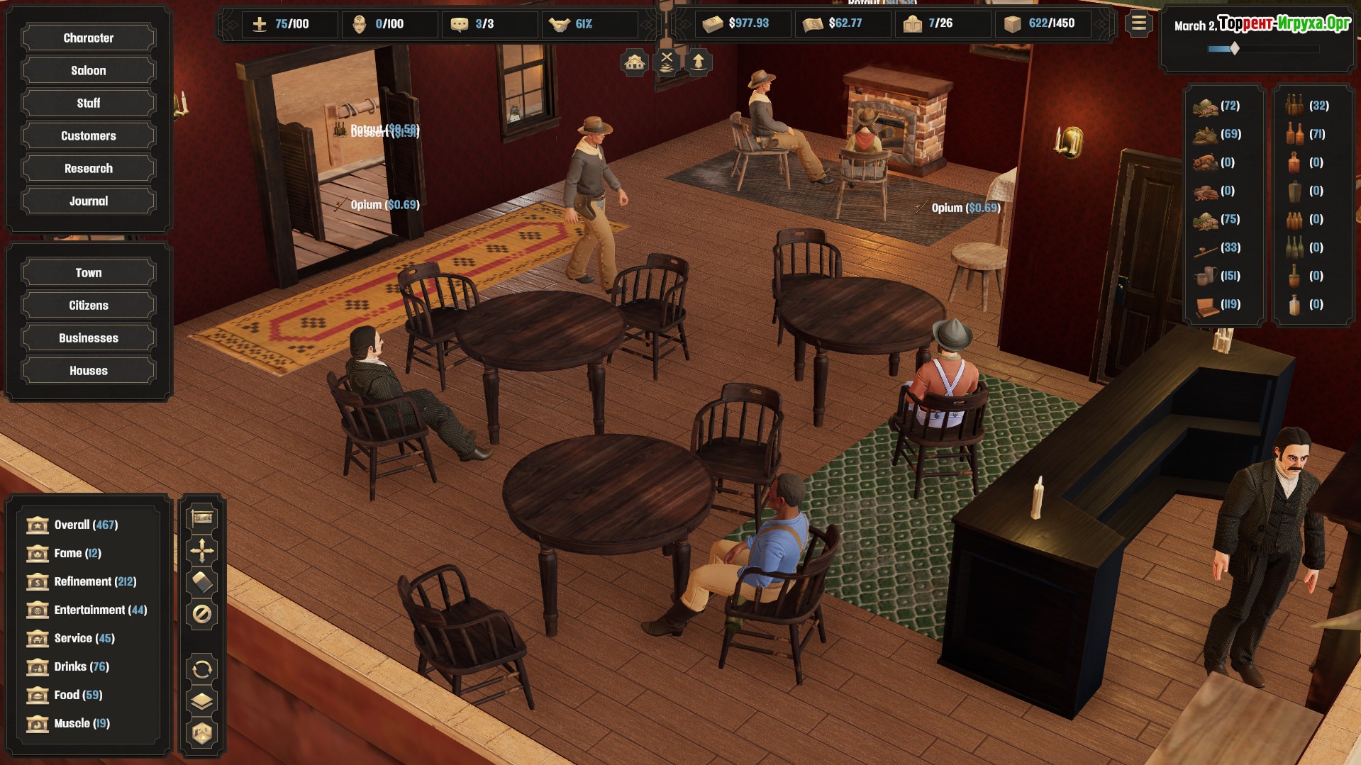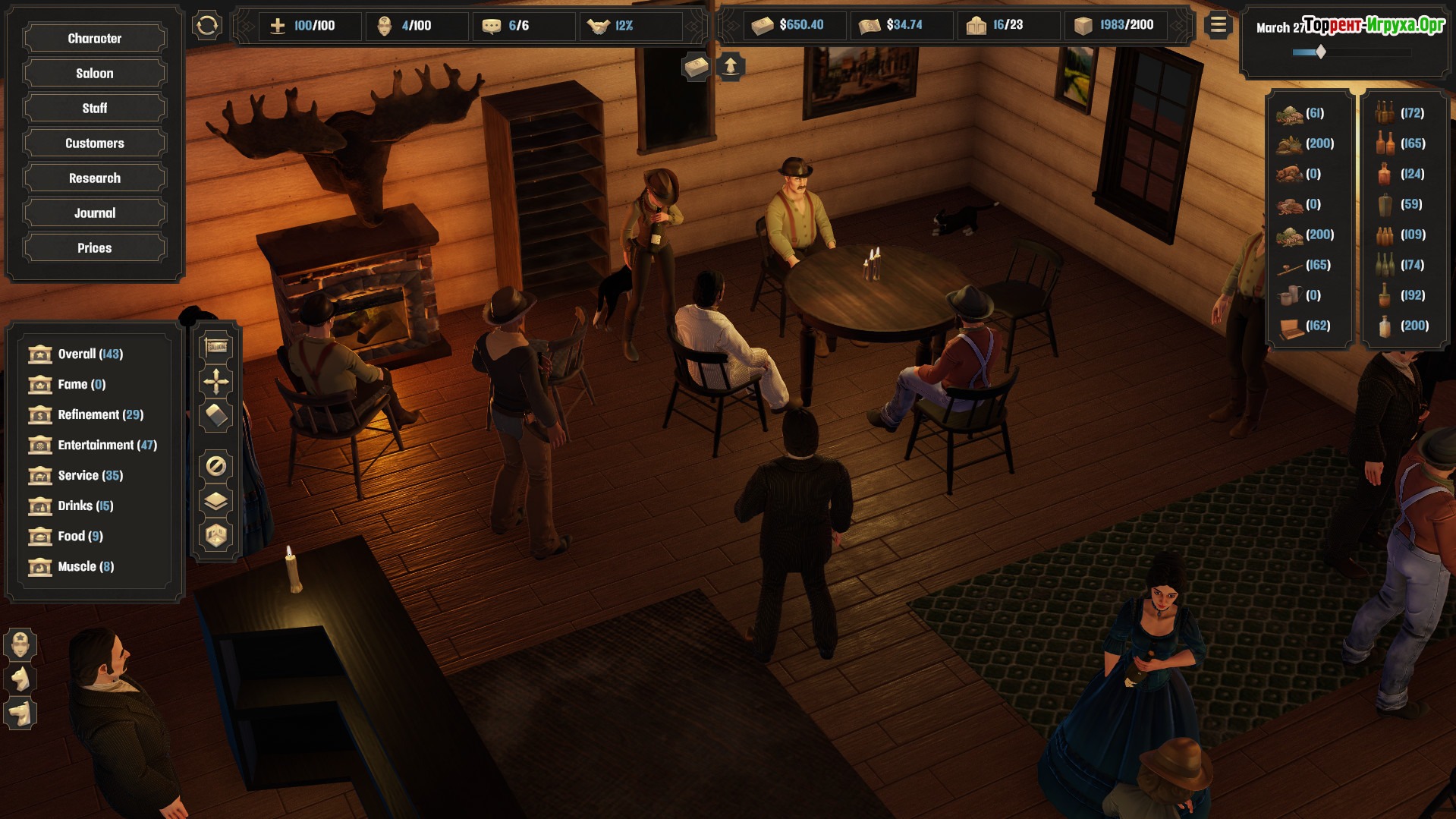Deadwater Saloon предлагает глубокий геймплей, где важны не только торговля и развитие бизнеса, но и борьба с человеческими проблемами — болезнями, старением и зависимостями. Ваша задача — сделать салон самым известным на Диком Западе, зарабатывая достаточно, чтобы выжить в жестких условиях и избежать выкупа или уничтожения. Эта игра отлично подойдет тем, кто мечтает ощутить жизнь владельца салона в древних американских прериях.