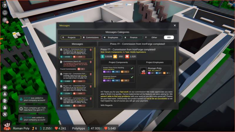 В DevLife вам предстоит заняться жизнью и карьерой персонажа, что потребует выполнения множества игровых заданий. Игровая механика разделена на две части: в первой вы будете исследовать свою жизнь и улучшать её, а во второй — активно работать, созидать и выполнять задания от начальства. Важно отметить, что вторая часть игры проработана более детально и имеет непредсказуемые результаты. Поэтому, если вы хотите испытать свои силы, рекомендуем вам зайти на наше хранилище и скачать торрент DevLife абсолютно бесплатно.