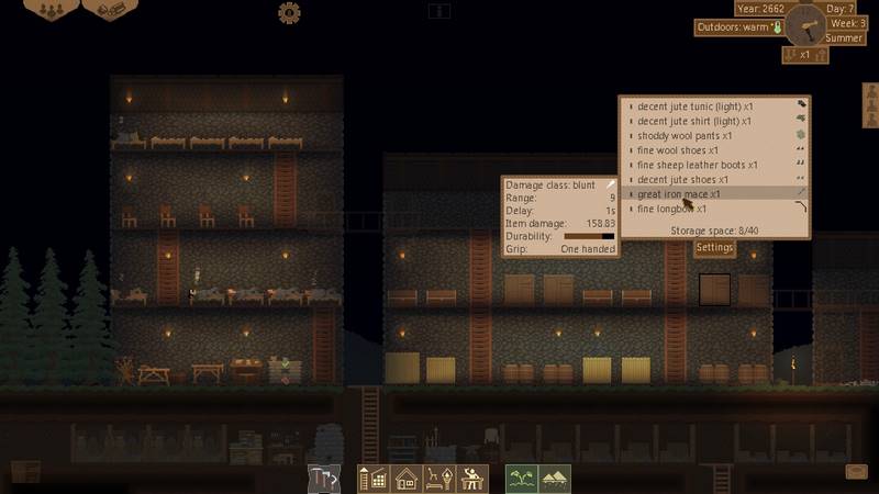 Grim Nights 2 представляет собой пиксельное приключение с элементами выживания и управления селением. В этой игре вам предстоит взять на себя руководство над населённым пунктом, жители которого борются за выживание и пытаются сохранить свои жизни. В процессе игры нужно будет заняться строительством, создать защитные сооружения и оптимально использовать доступные ресурсы для улучшения окружающей среды. Откройте для себя новые территории и погрузитесь в увлекательное путешествие, полное захватывающих открытий.