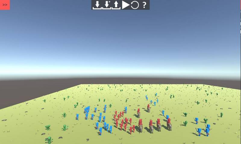 Вы начнете игру за синих воинов, хотя красных юнитов будет больше. Поэтому постарайтесь заработать дополнительные очки для повышения мощности своих юнитов. Проявите максимум усилий, чтобы уничтожить красные юниты и стать победителем. Всего две команды, но только одна может одержать верх.