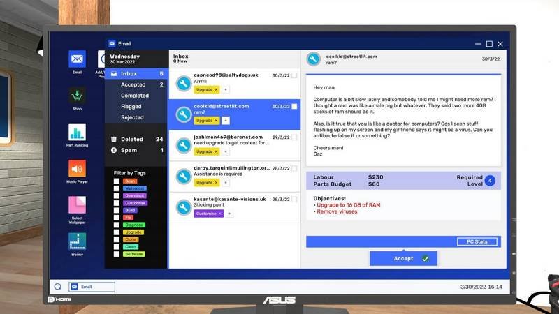 Что касается специфики игры, то она включает в себя возможность самостоятельно протестировать собранный компьютер, широкий выбор деталей для качественного выполнения сборки, а также шанс попробовать свои силы в разработке ПК. Графическое оформление максимально удовольствующее и реалистичное, а детали имеют аналоги из реального мира.