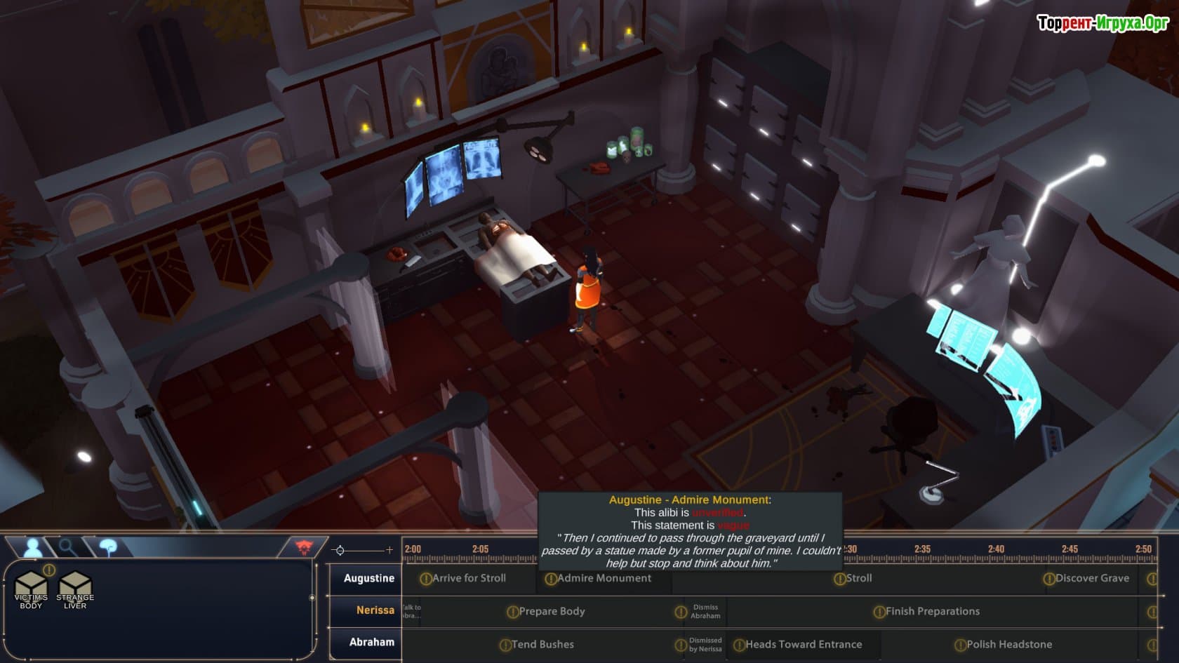 В процессе игры вы будете опрашивать разнообразных подозреваемых, каждый из которых скрывает свои грехи и секреты. От слежения за жестами до анализа интонации и сказанного — ключом к успеху станет умение выявлять противоречия и строить верные гипотезы. Так вы научитесь определять, кто лжет и кто действительно мог оказаться под влиянием демонической сущности.