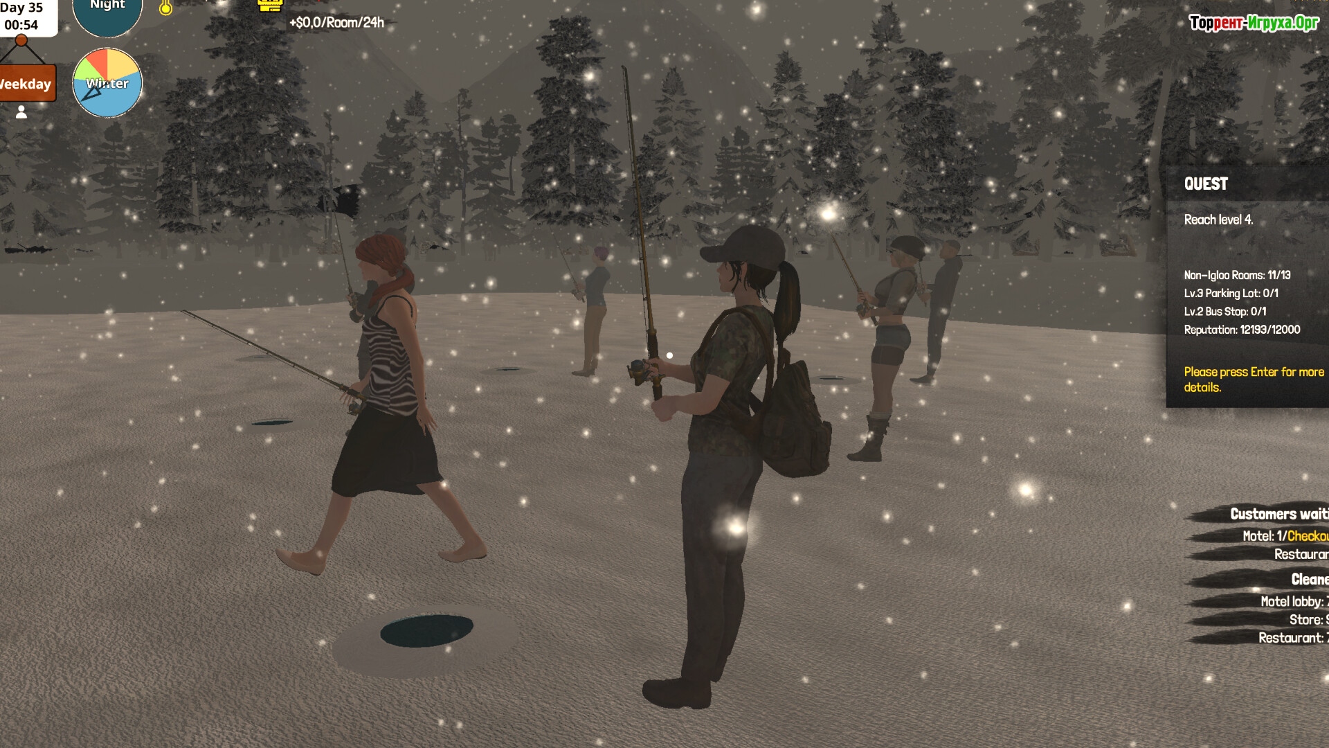 Начинайте свой путь с реставрации старого здания в живописном арктическом лесу, постепенно расширяя территорию и открывая новые услуги для различных категорий гостей. Летом ваш мотель будут посещать путешественники, а зимой — искатели острых ощущений и приключений. Контролируйте температуру и влажность, чтобы обеспечить комфорт гостей в любых погодных условиях.