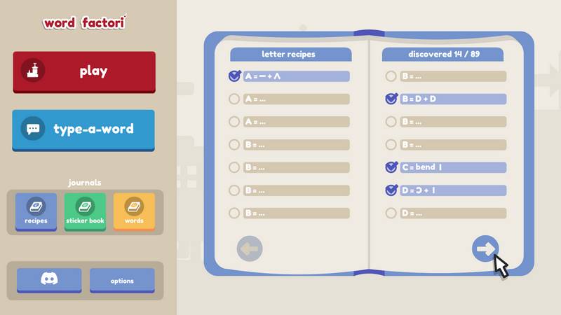 "Word Factori" — это простая, но в то же время увлекательная игра, которая требует от игроков сообразительности и интуиции. Проявив усилия, вы сможете создать целый алфавит. Заходите в мир этих интеллектуальных вызовов, собирайте рецепты и наклейки в альбом, применяйте полученные знания и многое другое.