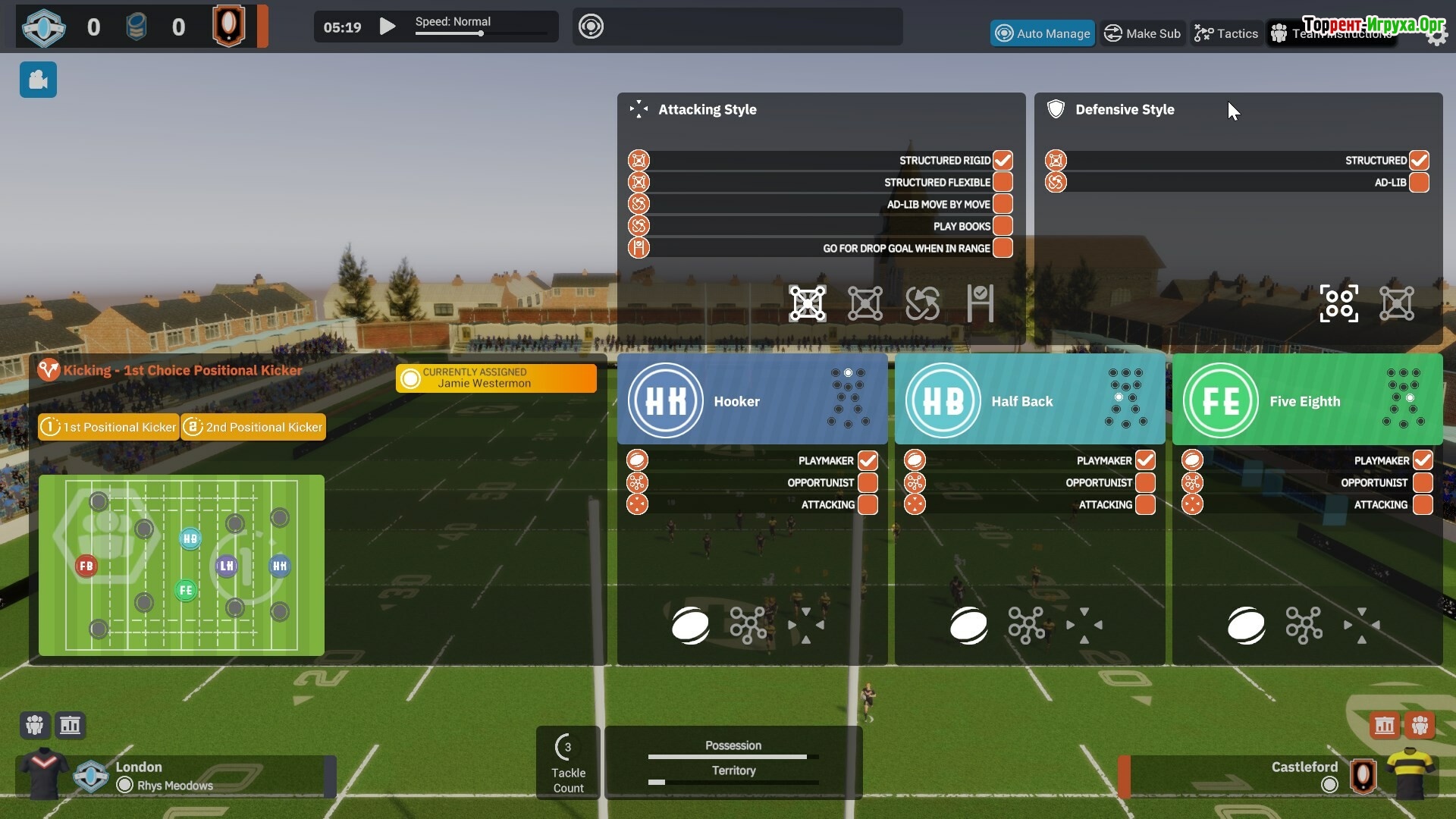 С помощью интуитивно понятного интерфейса вы легко распределяете обязанности между тренерами, формируете расписание тренировок и принимаете ключевые решения по игровому составу. В Rugby League Team Manager 4 можно не только строить игровые стратегии и назначать удары, но и отправлять скаутов на поиск талантливых игроков по всему миру, что делает процесс управления максимально реалистичным и глубоко проработанным.