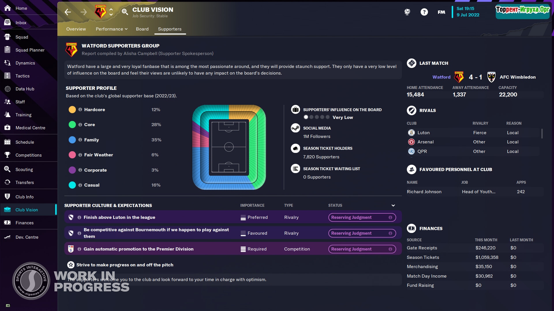 Высокая детализация всего происходящего помогает погрузиться в управление командой максимально ответственно. Теперь вы — элита, способная создавать уникальные игровые стили, завоёвывать популярность и контролировать ход соревнований. Расширенный набор функций делает Football Manager 2023 особенно привлекательной для скачивания и игры на ПК.