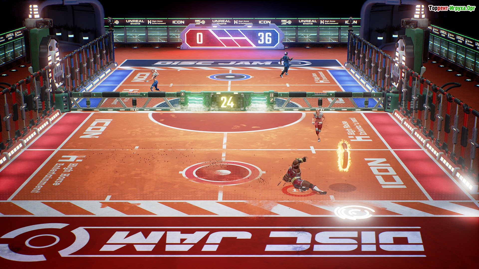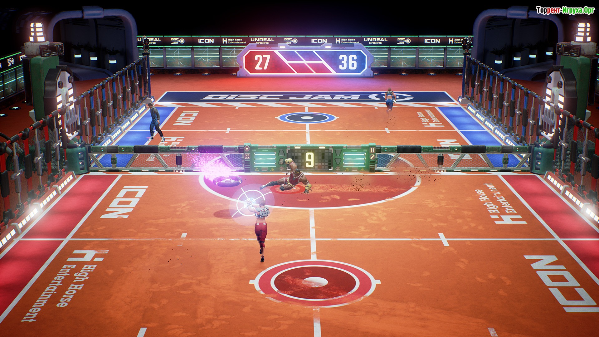 Disc Jam — динамичная игра, сочетающая в себе элементы тенниса и хоккея в футуристическом оформлении. Разработанная High Horse Entertainment в 2017 году, эта спортивная арена предлагает уникальный игровой процесс, где на поле с сеткой игроки метают светящийся диск, стараясь попасть в три целевые зоны соперника и заработать от 3 до 5 очков. Такой необычный микс спорта и стратегии делает Disc Jam захватывающим развлечением.