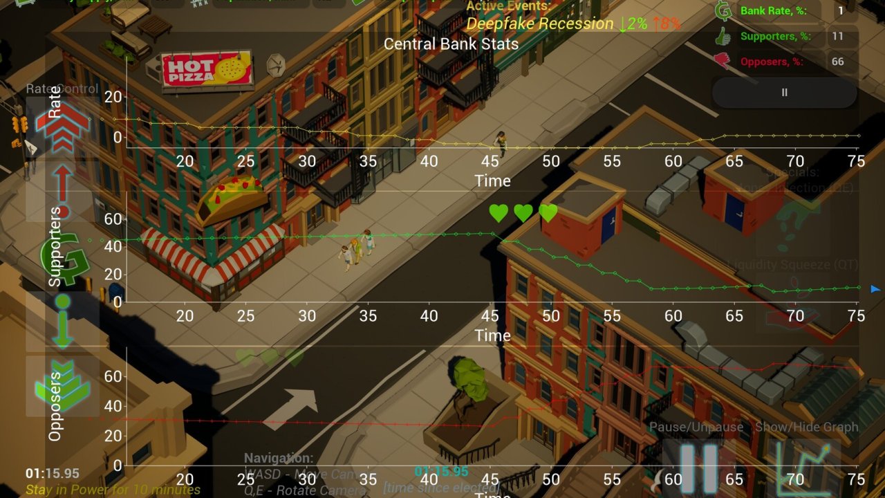Central Bank – это стратегический симулятор, посвященный экономике, в котором вы берете на себя роль архитектора международной денежной политики. Демонстрируя свои навыки, вы будете управлять процентными ставками, анализировать различные показатели и предсказывать их последствия. Зачем заниматься этими задачами? Ответ прост: так вы сможете поддерживать экономику в стабильном состоянии.