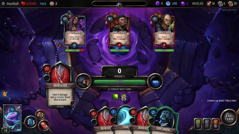 Это одиночная карточная игра в жанре Roguelite, где вы управляете каждым своим ходом. Вы получите потрясающий опыт от проекта, в котором ваша судьба определяется элементами случайности. Вы можете заранее узнать о наградах за определённые действия, а также подготовиться к столкновению с противником, разработав свою стратегию и адаптировавшись к условиям боя.