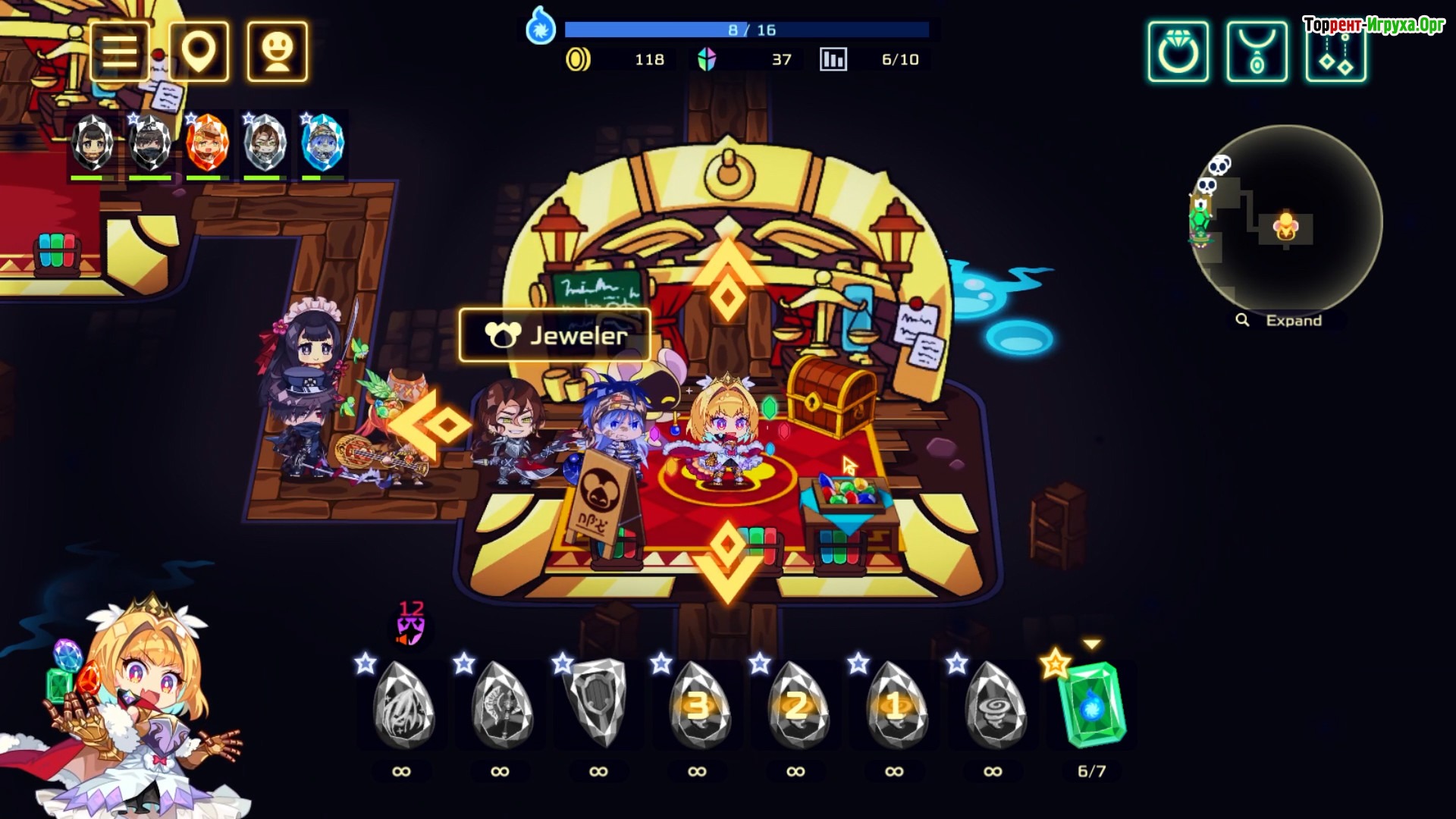 Исследуйте процедурно сгенерированные подземелья, сражайтесь с опасной ведьмой и спасайте товарищей из заточения. По мере прохождения вы сможете сформировать уникальную команду из драгоценных камней, что станет ключом к успеху. Правильное использование камней и стратегия играют важную роль, ведь каждая комбинация открывает новые возможности и силы.