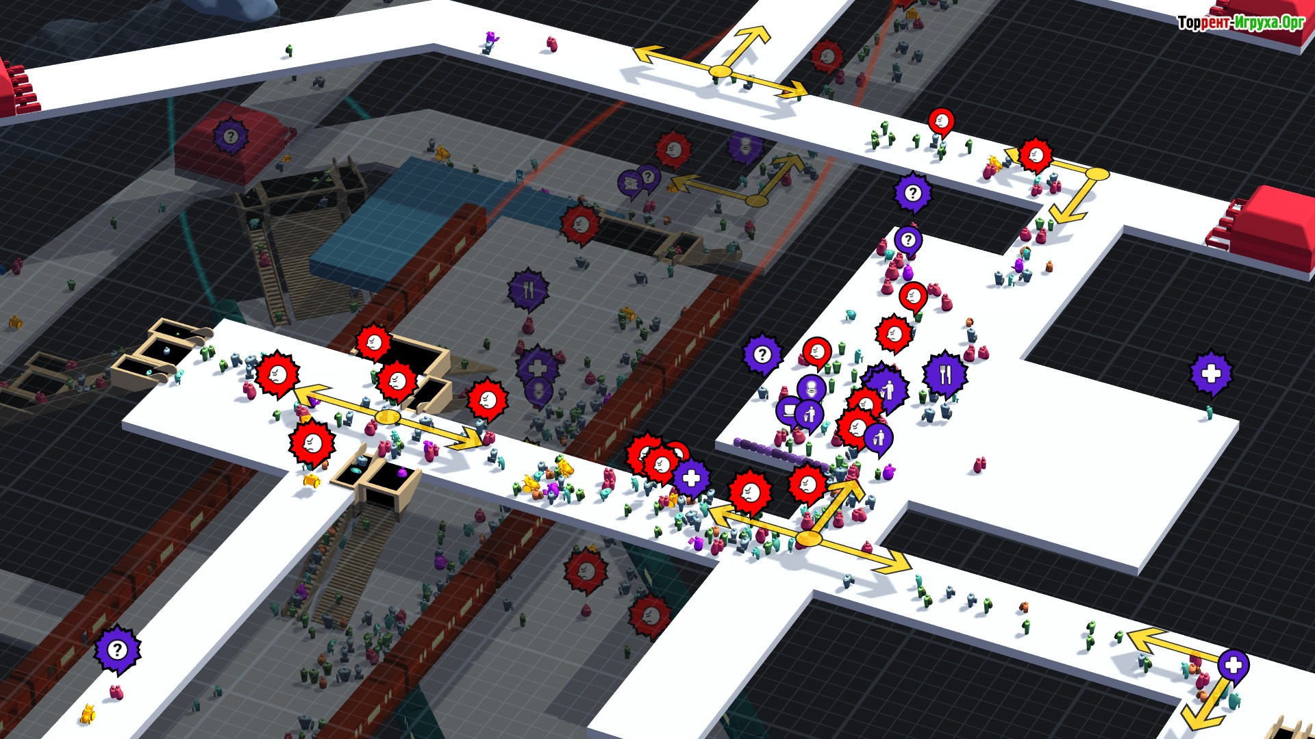 Задача игрока — обеспечить плавный поток, предотвратить скопления и заторы, доставляя путешественников быстро и безопасно по их маршрутам. При этом важно грамотно использовать навигационные таблички и вывески, направляя людей к оптимальным путям. В STATIONflow короткие маршруты не всегда являются лучшими, поэтому требуется тонкое балансирование между временем и комфортом передвижения.
