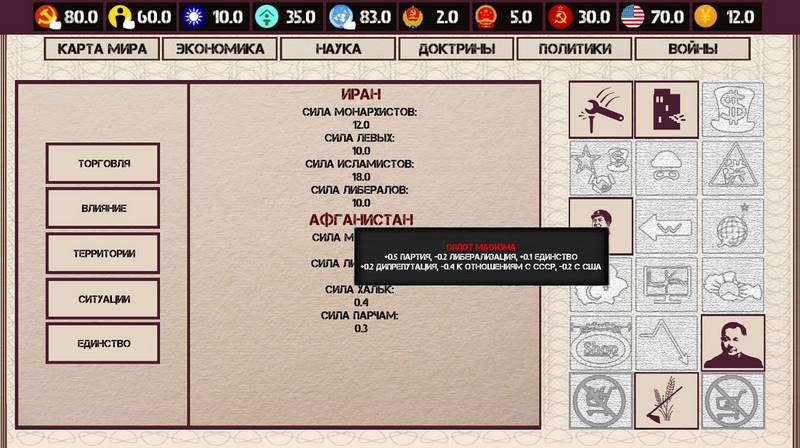 В игре China: Mao’s legacy, скачать торрентом которую можно без каких-либо затрат, события разворачиваются в Китайской Народной Республике в период с 1976 по 1985 год. После ухода из жизни Мао Цзэдуна отношения с Советским Союзом оказываются в кризисе, а шансы на восстановление лидерства в социалистическом блоке, казалось, безнадежно утрачены. В то же время капиталистические страны настороженно оценивают Китай, в то время как экономика, пережившая «Культурную революцию», находится под строгим контролем государства.