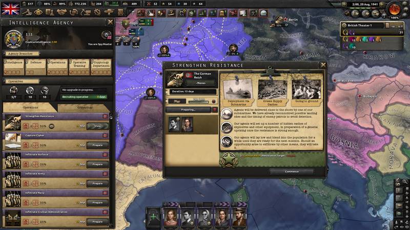 В этой игре вы сможете насладиться разнообразными фокусами для Франции, что добавляет особенно интересные элементы в игровой процесс. С первых же минут Hearts of Iron 4: La Resistance захватывает и погружает игрока в свои дела. Каждому хочется стать шпионом и создать свою собственную армию, но для этого нужна тщательно продуманная стратегия. Успех придет к вам, если вы сумеете захватить вражеские объекты.
