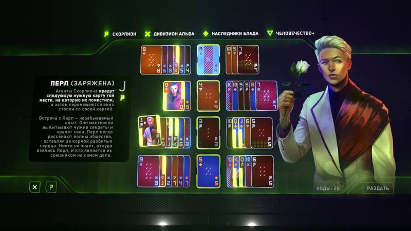 Необыкновенный стиль исполнения - еще одна выдающаяся черта этого проекта. Качественное визуальное оформление радует глаз множеством уникальных элементов. Не упустите шанс использовать каждую деталь! Каждая карта пропитана киберпанковыми мотивами и гармонично вписывается в выбранный отряд. Все действия и ходы сопровождаются плавной анимацией и другими элементами, которые обогащают ваш игровой опыт. Убедитесь сами, загрузив проект The Solitaire Conspiracy на свой ПК, и отправьтесь в это захватывающее приключение!