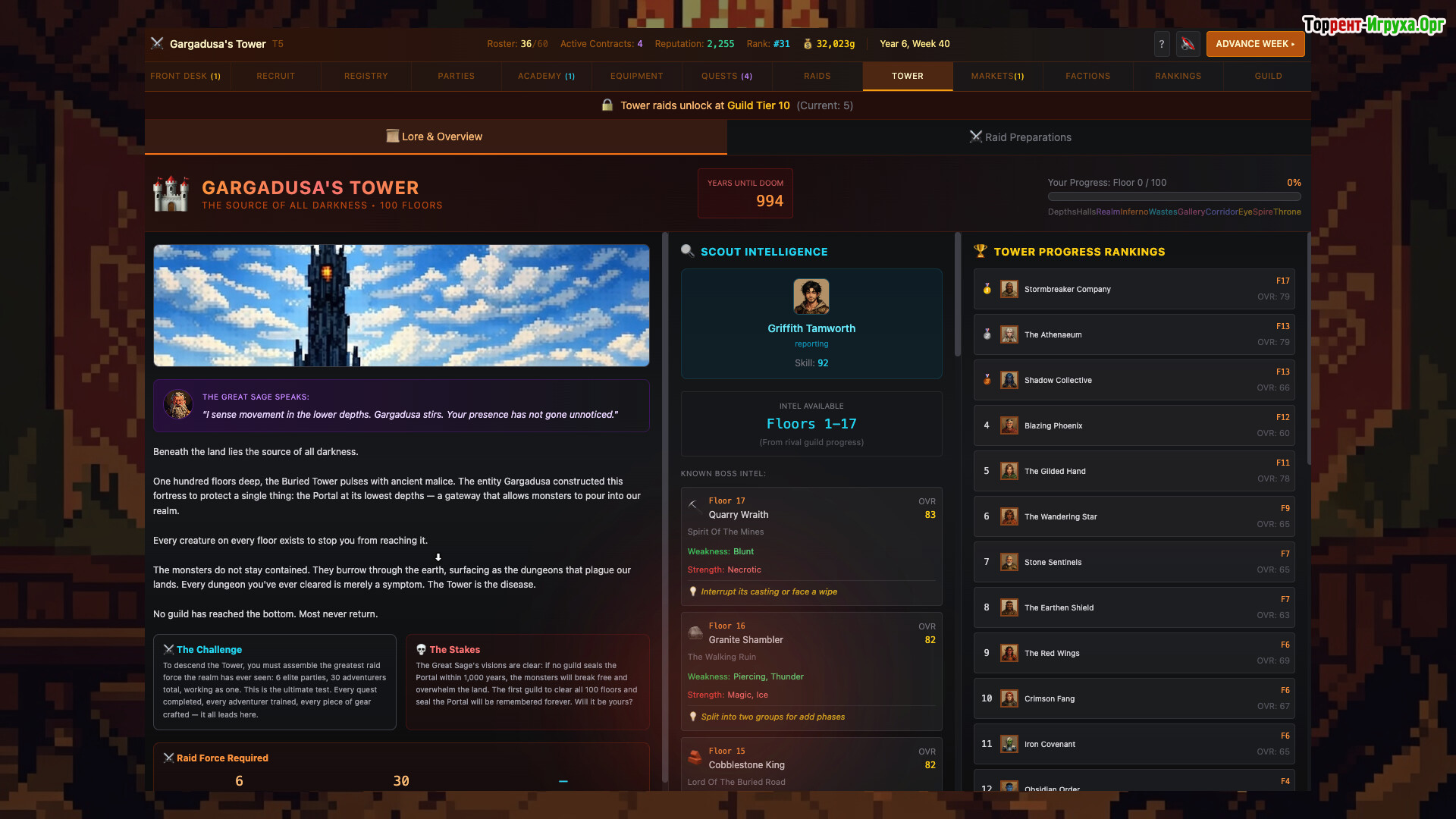 Гильдия постепенно превращается в развитую структуру с экономикой и традициями. Одни герои завершают свою службу, уступая место новым поколениям, формируя тем самым новые пути развития организации. Каждое решение в игре отражается на будущем гильдии и её способности выживать в суровом мире башни.