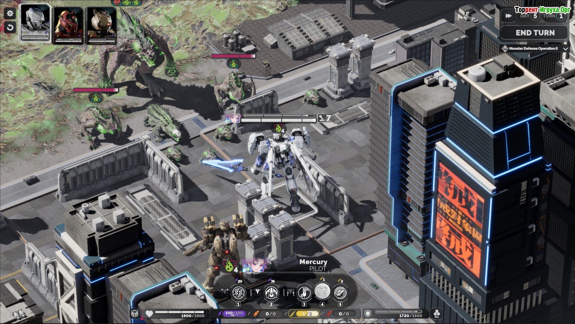 За уничтожение базы игра заканчивается, а некоторые волны могут быть настолько неадекватные, что количество врагов попросту начнут игнорировать твоих мехов и разнесут за 1-2 хода здание. И вот тут начинается проблема- даются очки для исследований новых модулей и экипировки, а потом снова начинать сначала, но можно выбрать модификаторы усложнения за большие бонусы... Вроде бы здорово... вот только экипировка то того же уровня начнет выпадать, она лишь увеличивает разновидность атак, но не их качество. А начинать с самого начала лишь с парочкой новых видов брони/мечей, которые по факту мало чем отличаются от уже имеющихся- сомнительное удовольствие.
