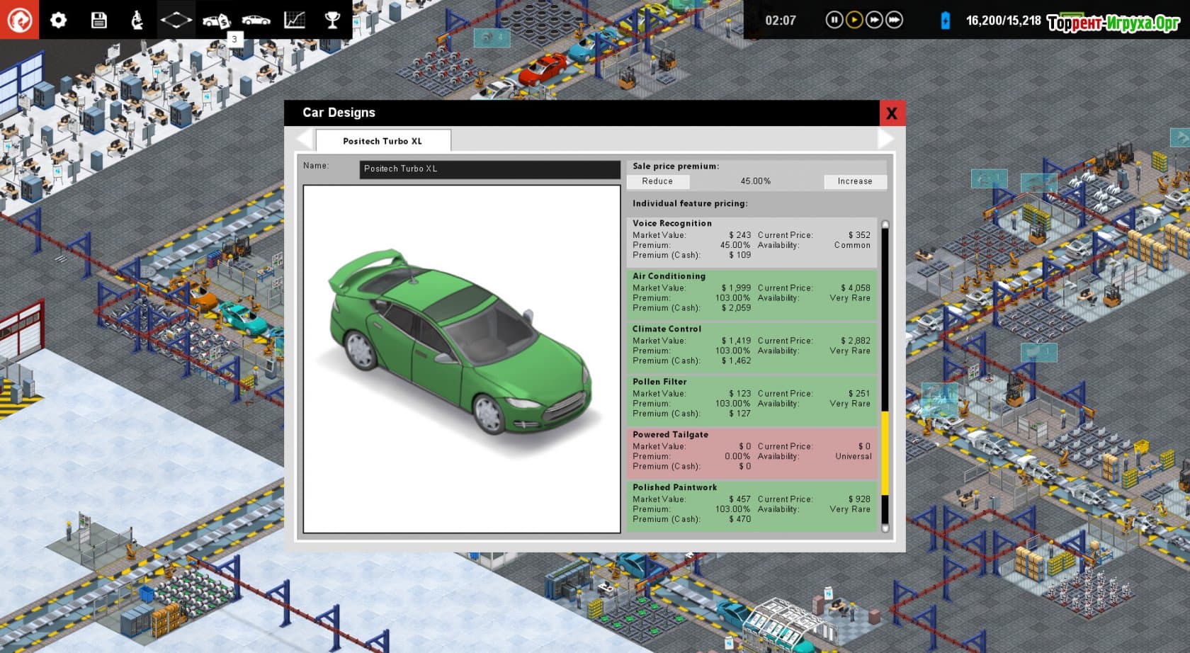 Production Line от Positech Games предлагает уникальный опыт управления автомобильным заводом, где вы самостоятельно разрабатываете и строите конвейерные линии, создавая различные модели автомобилей. Эта игра позволяет увидеть весь процесс создания машины от зарождения идеи до выпуска готовой продукции, уделяя внимание каждой детали производства. Рациональное использование ресурсов и минимизация ошибок станут ключом к успешному развитию вашего предприятия.