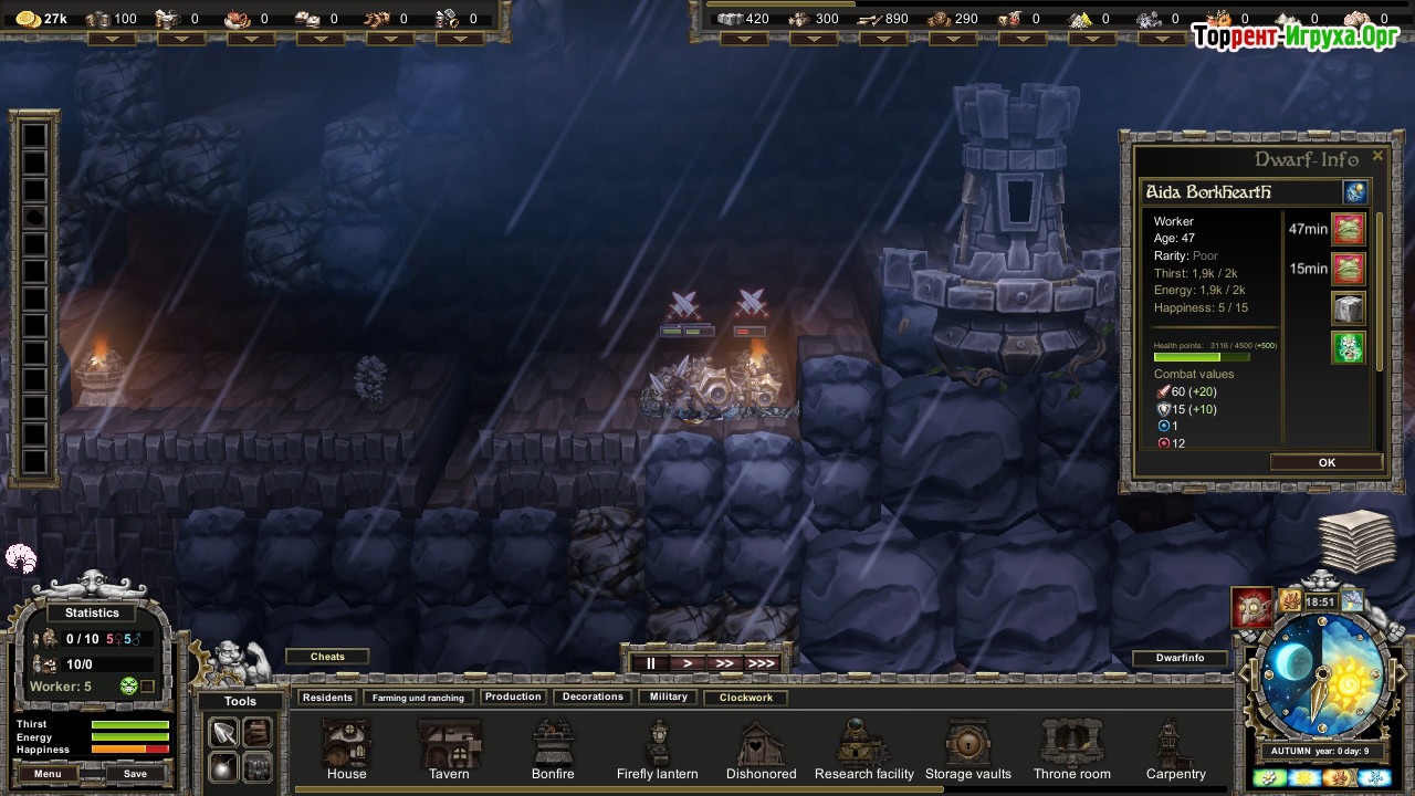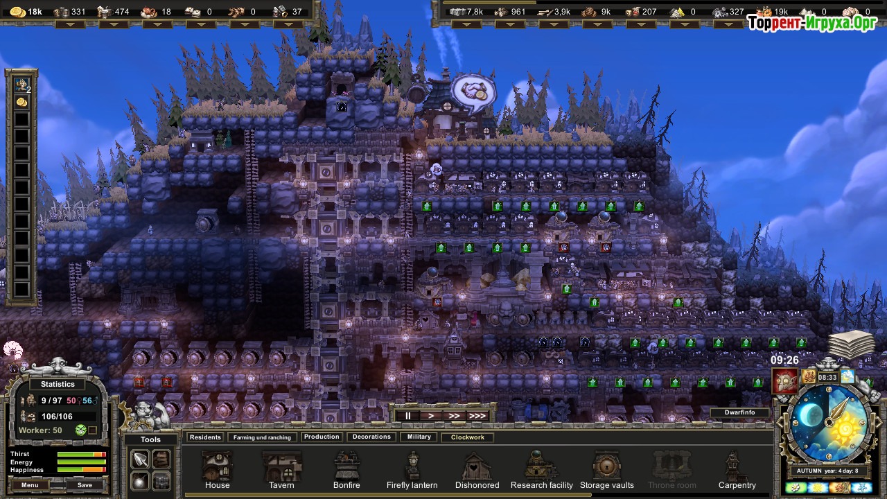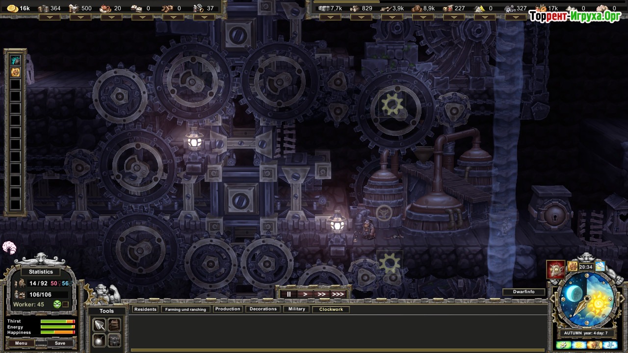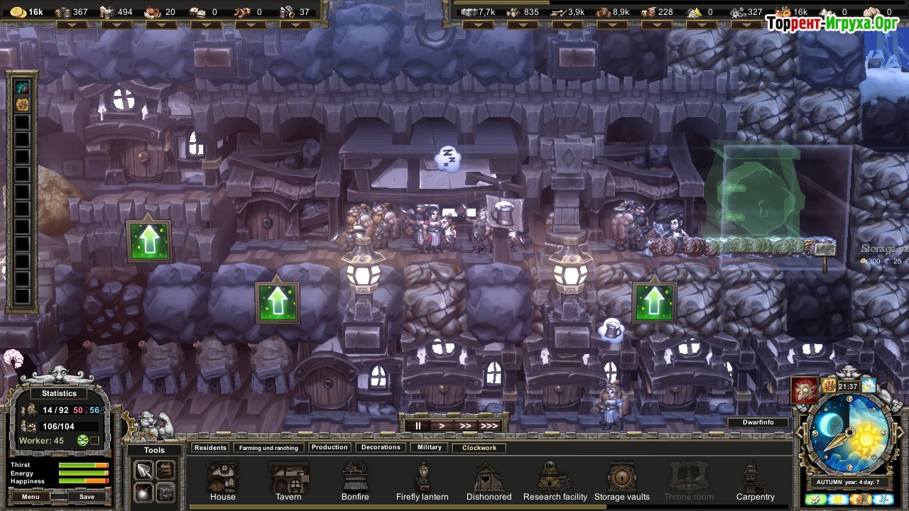 Игровой процесс в Stonedeep требует внимательности и стратегического планирования, ведь сезонные изменения, такие как весенняя влага и зимние морозы, существенно влияют на состояние почвы и потребности жителей. Управление потребностями гномов и повышение уровня цивилизации помогают увеличить доходы и развивать инфраструктуру, поддерживая жизненный баланс в подземном городе. Это динамичное выживание в сложных условиях делает игру интересной и разнообразной.