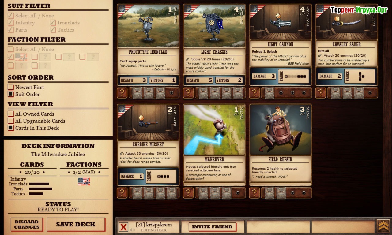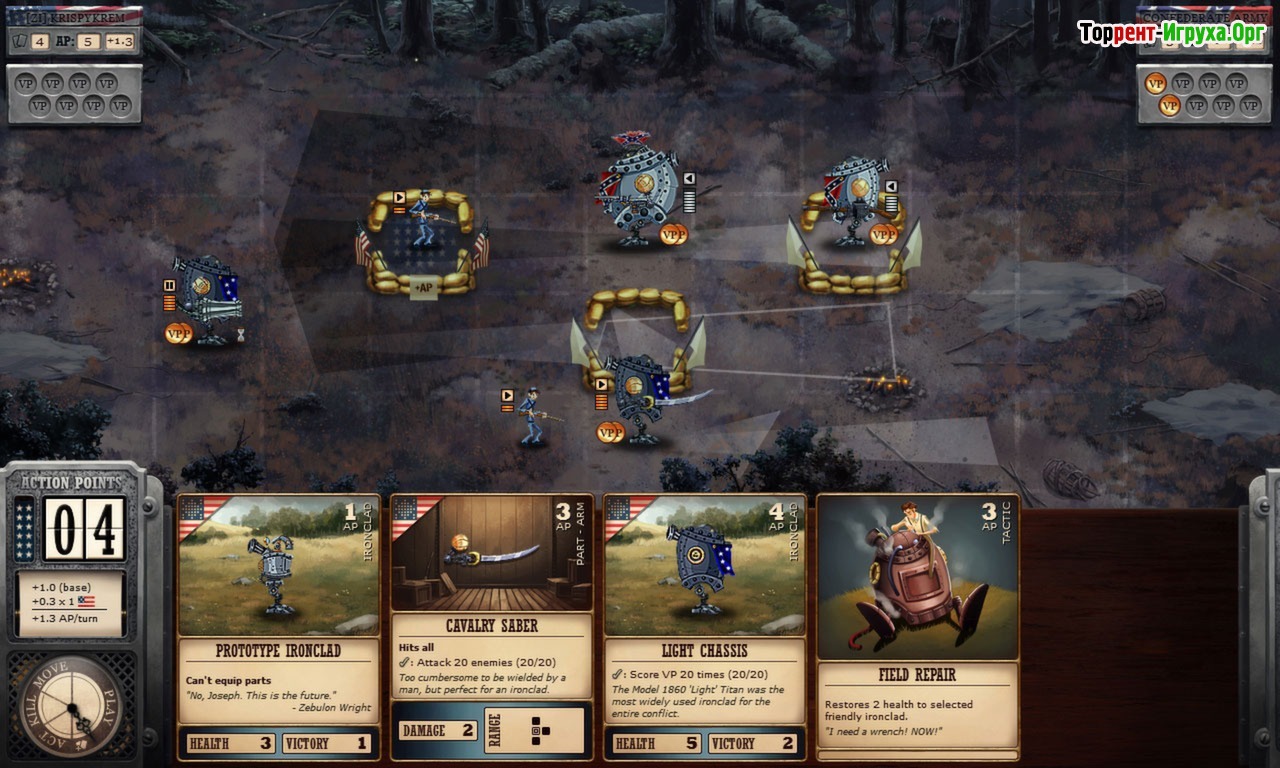 Ironclad Tactics Deluxe Edition от разработчика Zachtronics Industries, выпущенная в 2013 году, представляет собой захватывающий гибрид стратегии в реальном времени и карточной игры. В ней вам предстоит управлять множеством боевых юнитов, включая пехоту эпохи американской Гражданской войны и гигантских роботов. Игра построена на системе из пяти линий, где вы управляете своими отрядами, ведя их в бой, чтобы получить 8 победных очков и одержать верх над противником.