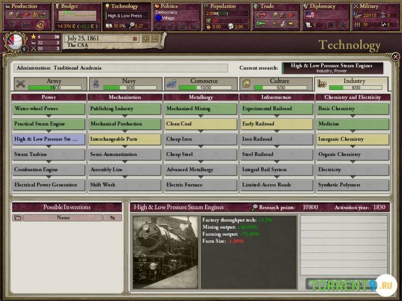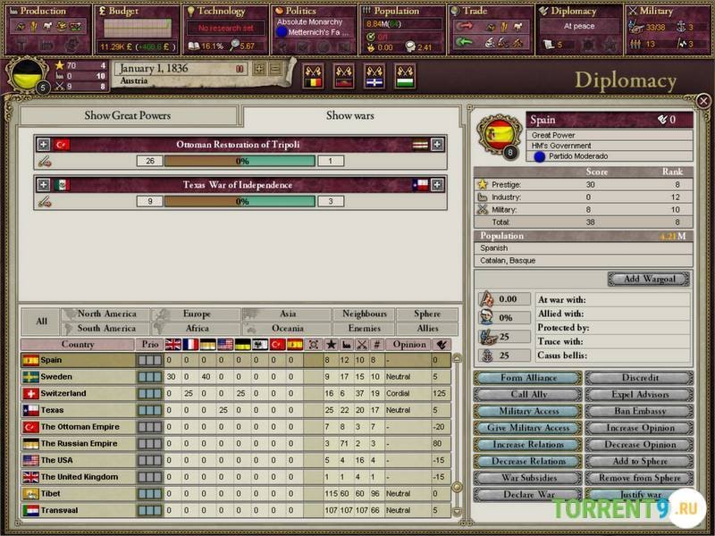 Глобальная стратегия "Victoria 2: A House Divided" представляет собой увлекательный опыт для игроков, желающих погрузиться в роли правителя. Вам предстоит взять на себя управление одним из более чем двухста государств, с целью привести его к процветанию и благополучию. Это задача не из легких, так как у вас могут появиться мощные соседи, которые будут пытаться устранить вашу страну с карты. Не удивляйтесь, если вам будут регулярно создавать препятствия и осложнять жизнь различными трудностями.