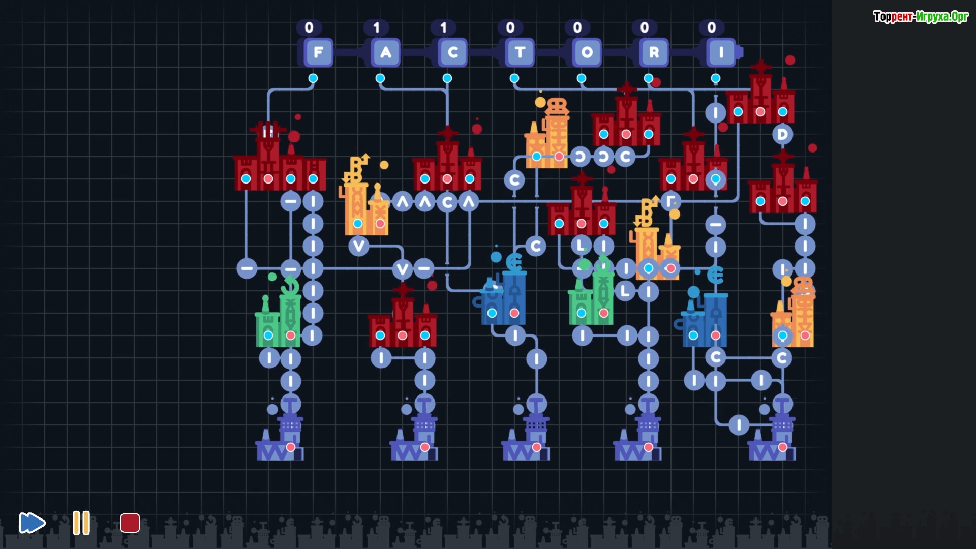 Сюжет игры строится вокруг оптимизации заводской сети, где игроку предстоит мастерски отражать и поворачивать буквы. Например, букву «i» можно превратить в «С» с помощью отражения, а для получения «О» необходимо объединить две буквы «С». Этот процесс развивается дальше, позволяя постепенно составить весь алфавит, применяя логику и интуицию для решения задач.